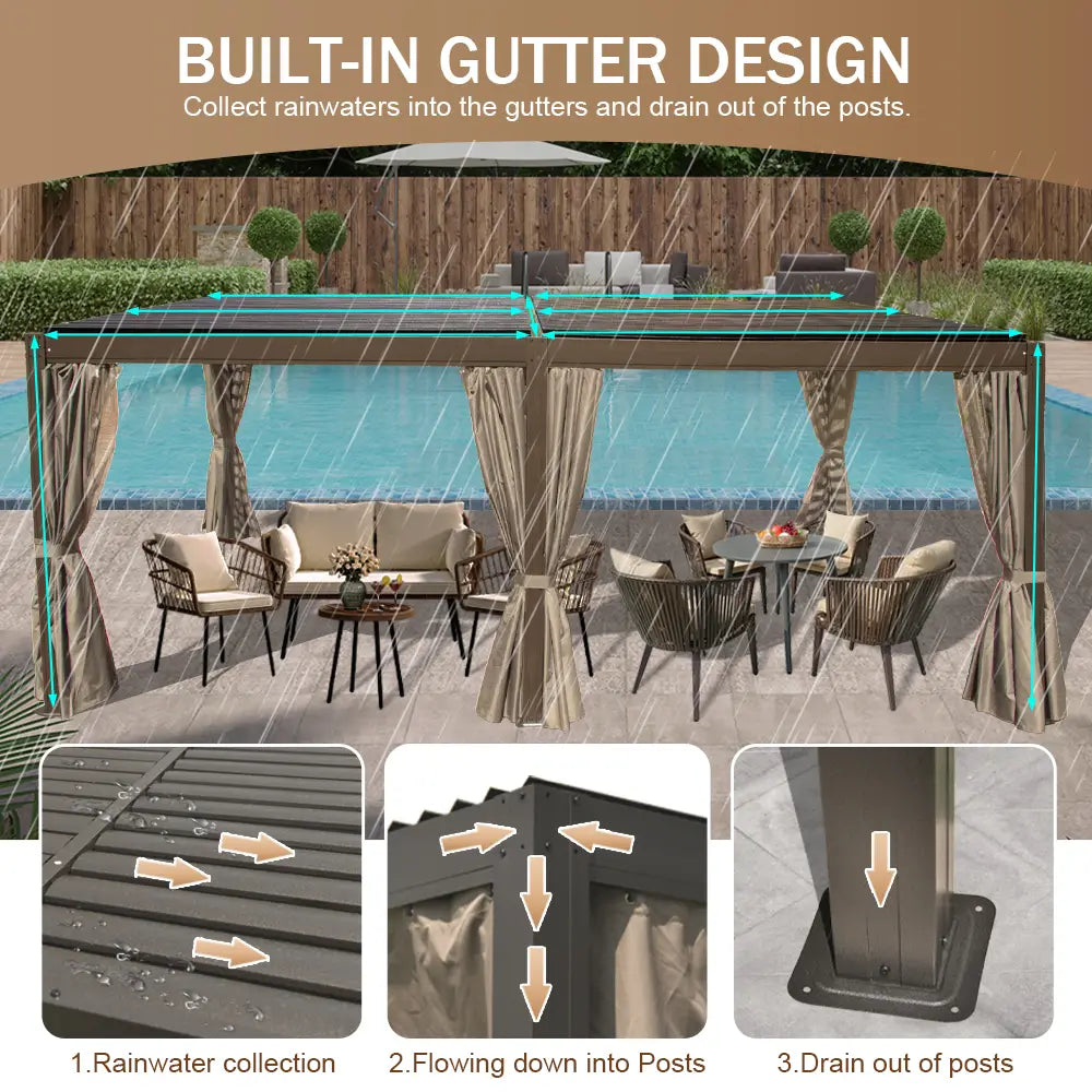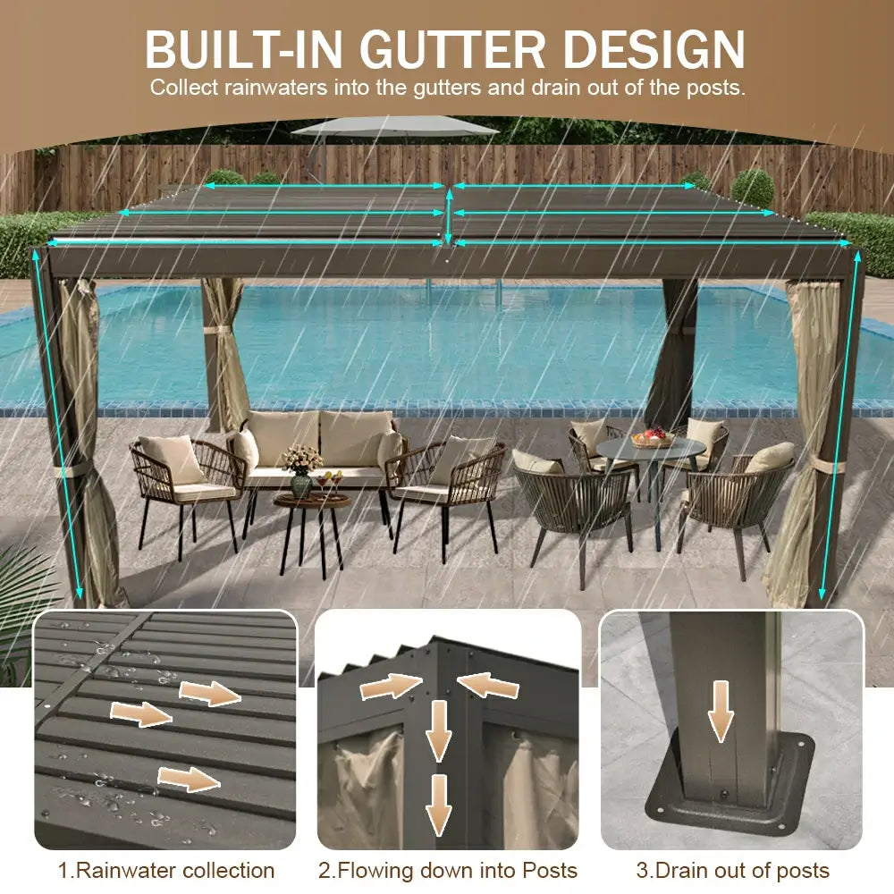 Immerse yourself in the world of sophistication and superior craftsmanship with the Domi Louvered Pergola. Expertly constructed from premium-grade, all-aluminum materials, it ensures unwavering durability, allowing you to enjoy your outdoor oasis for years to come. With a built-in gutter system that efficiently manages rainwater runoff, you can rest easy knowing your pergola will remain pristine, regardless of the weather conditions. Elevate your outdoor living space with the Domi Outdoor Living Louvered Pergola and indulge in the beauty of nature, free from worry.