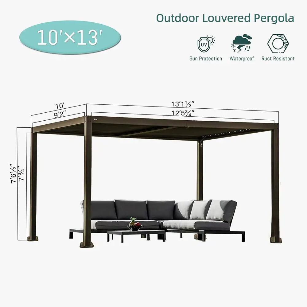 Unwind and immerse yourself in the serene embrace of nature with the Domi Outdoor Living Louvered Pergola. Designed to elevate your outdoor living experience, this exquisite structure beckons you to indulge in the pleasures of relaxation and entertainment. Crafted with meticulous attention to detail, it seamlessly blends functionality, versatility, and sheer elegance. Allow us to take you on a journey through remarkable features that make the Domi Outdoor Living Louvered Pergola an unrivaled addition to your outdoor sanctuary.