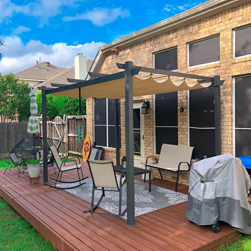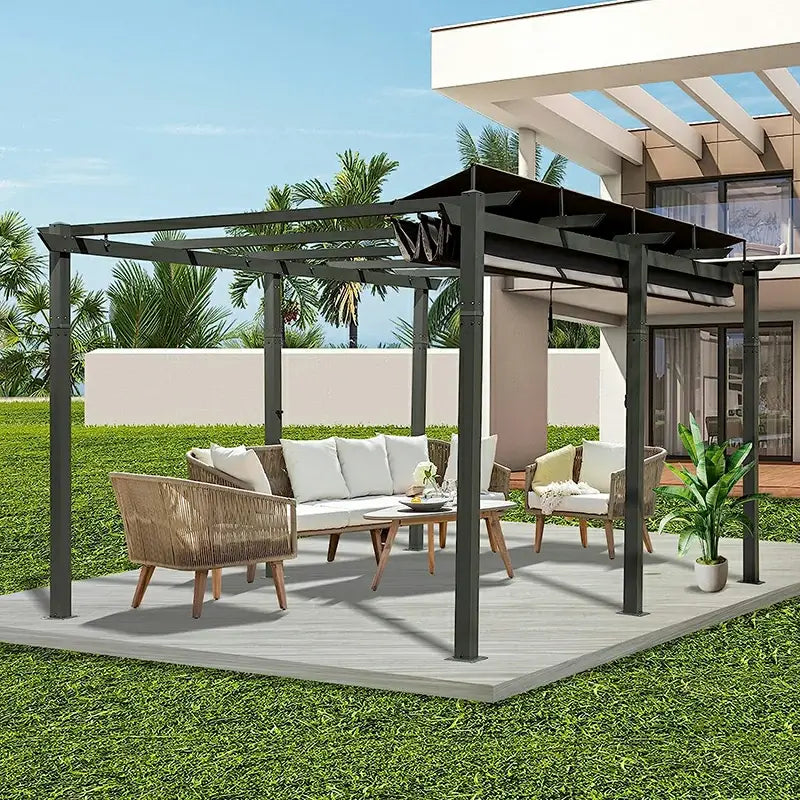 Are you ready to transform your outdoor space into a haven of comfort and style? Look no further than the Domi Outdoor Living Outdoor Retractable Pergola with Sun Shade Canopy. Designed to enhance your porch, garden, beach, or patio, this pergola provides a perfect blend of functionality and aesthetics.