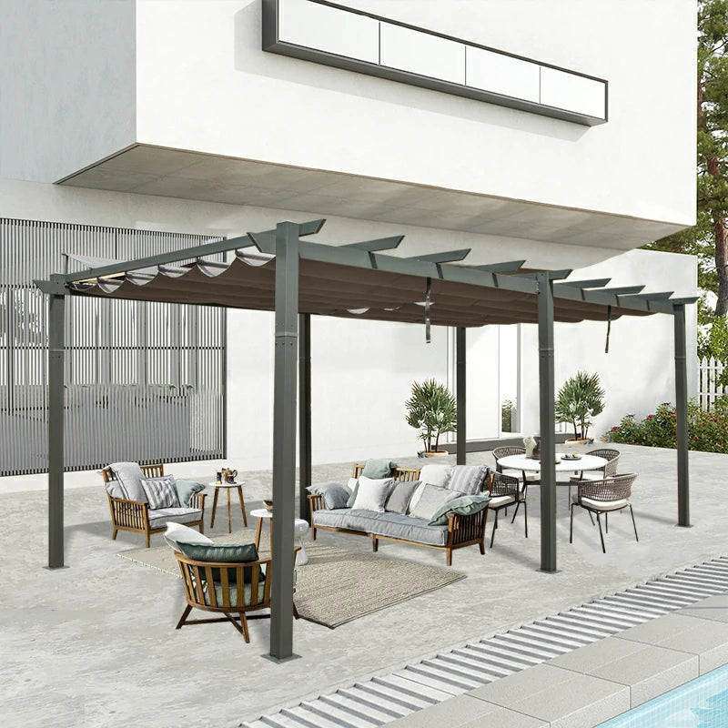 Crafted with modern aesthetics in mind, this pergola boasts a sleek and sophisticated design that adds a touch of elegance to any outdoor setting. The gray color complements various decor styles, making it a versatile addition to your space. Its sturdy aluminum construction ensures durability and longevity, withstanding the test of time and weather elements.
