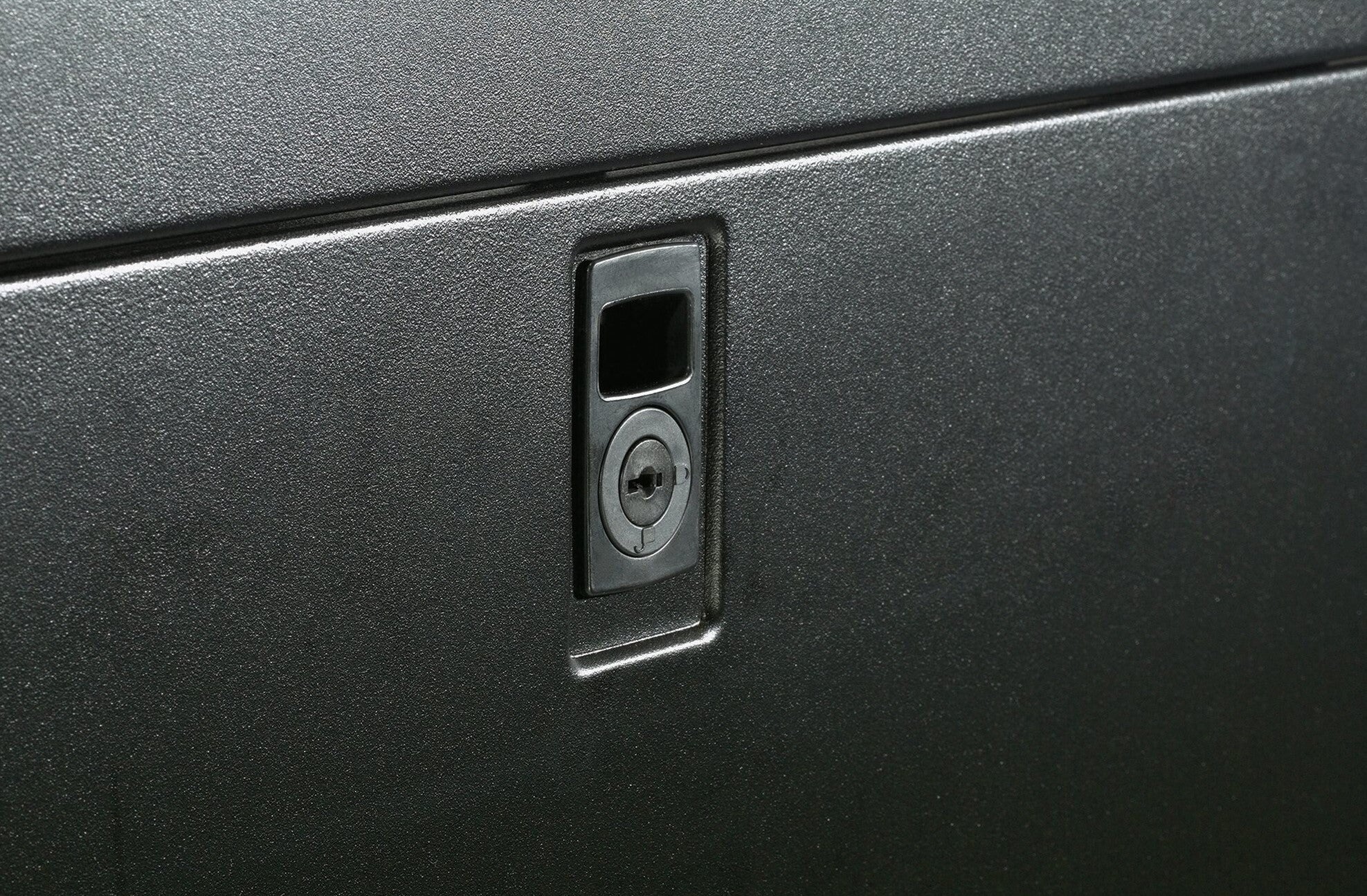 Built from heavy-gauge steel and finished in black, the enclosure offers protection that stands up to daily use. The front and rear doors, as well as both side panels, share a single key for straightforward access control. Perforated doors encourage front-to-back airflow, helping equipment fans move heat out of the rack rather than into the room.