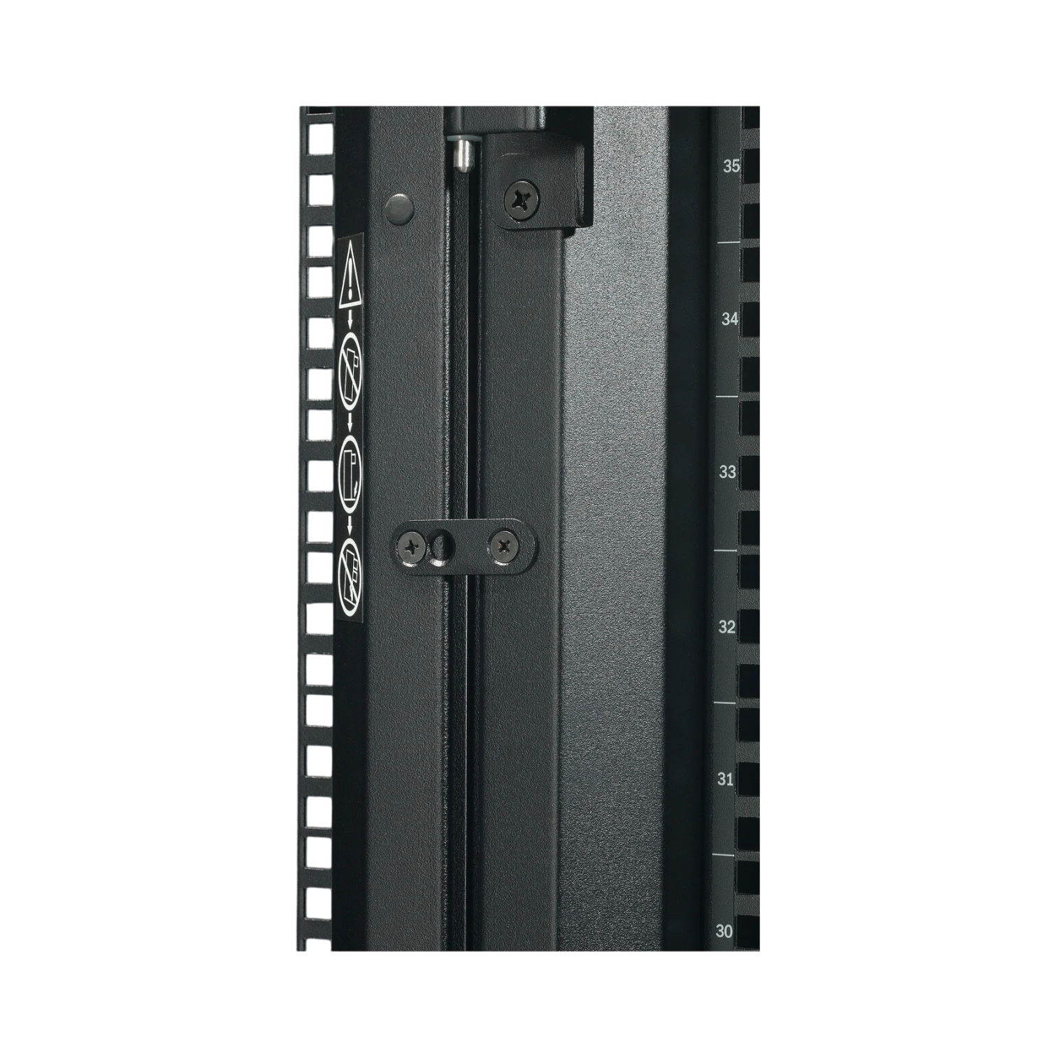 Integrated cable management channels run the full height of the frame, keeping power and data lines tidy and clear of ventilation paths. Perforated front and rear doors allow ample airflow that helps your cooling system maintain stable inlet temperatures even in higher-density deployments.