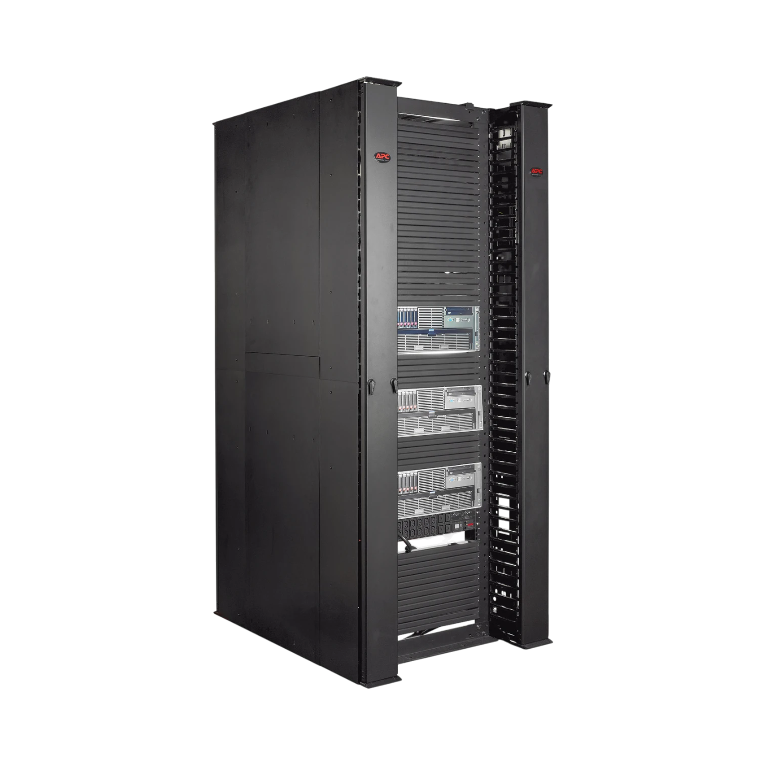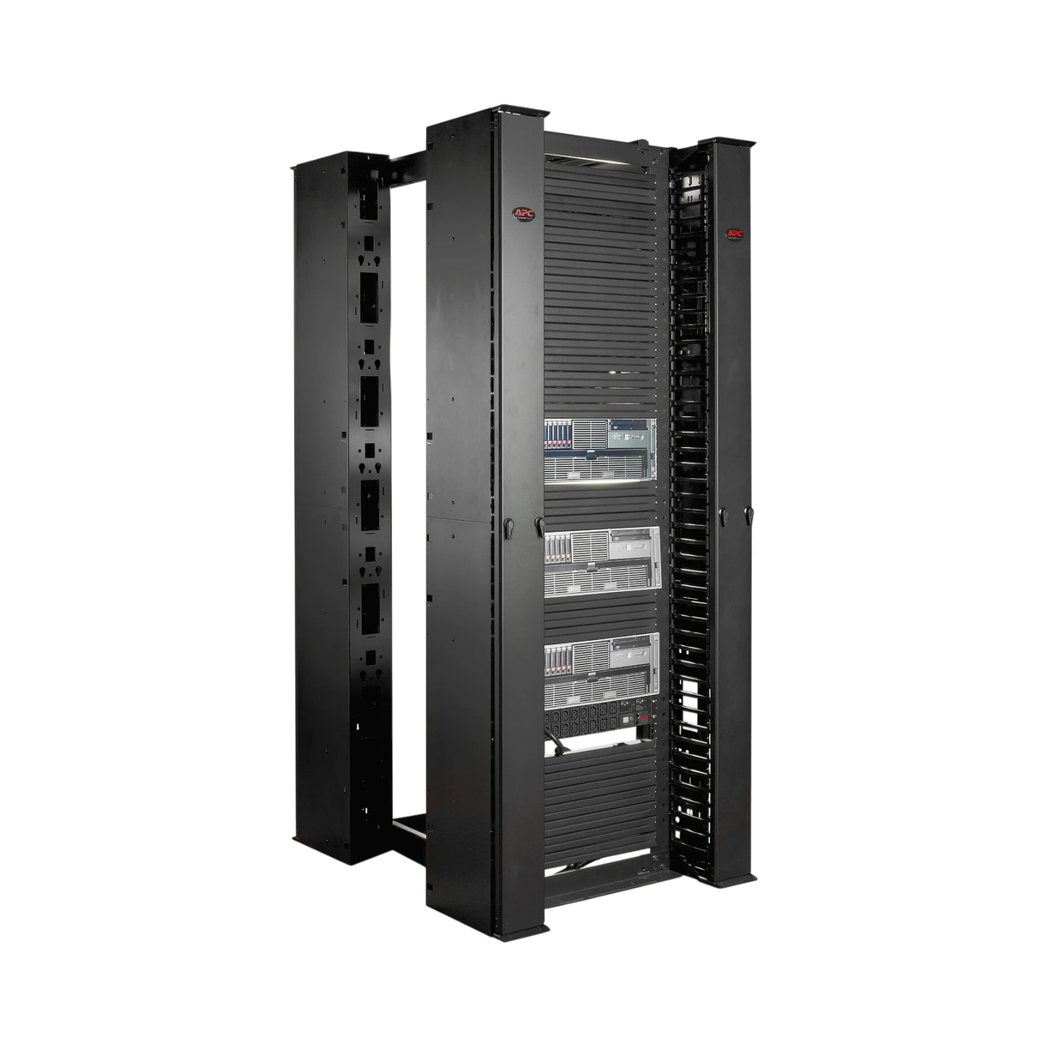 Tool-free backplates accept APC accessories such as rack power distribution units and hook and loop managers, trimming installation time and avoiding extra hardware. The sturdy steel and plastic build holds up in busy data center aisles, and the black finish lines up with NetShelter enclosures for a uniform look across the rack row.