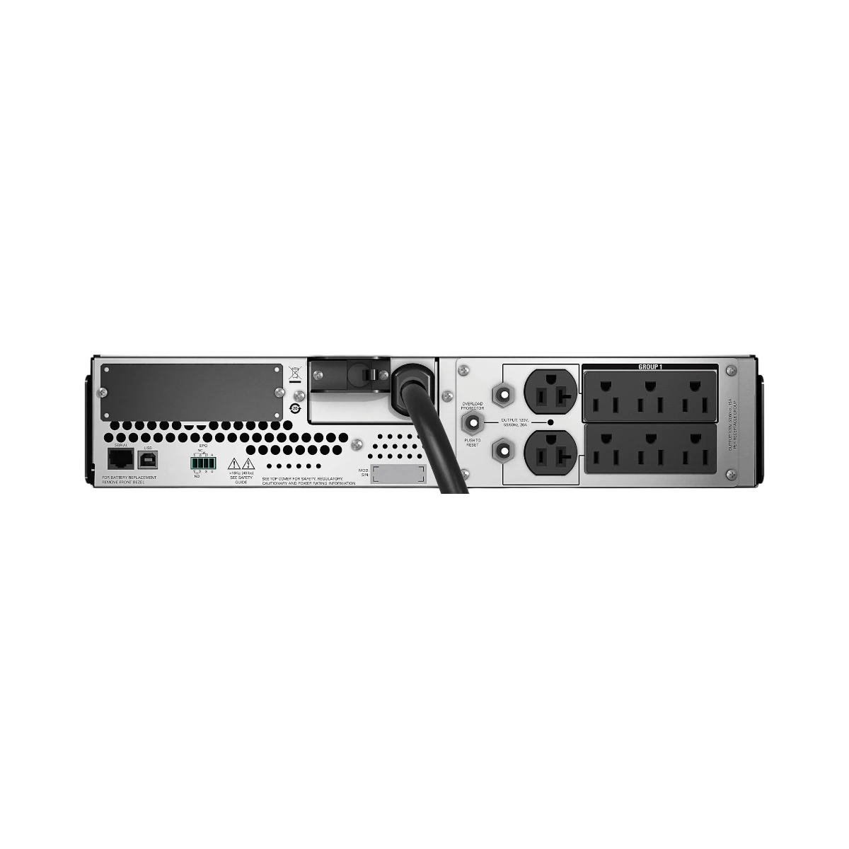 Equipped with six NEMA 5-15R outlets and two NEMA 5-20R outlets, it offers flexible connectivity options for a variety of devices. The NEMA L5-30P input ensures a secure and dependable power connection. The unit’s intelligent battery management system helps extend the life of its lead-acid battery, which you can replace easily without shutting down your equipment thanks to its hot-swappable design.