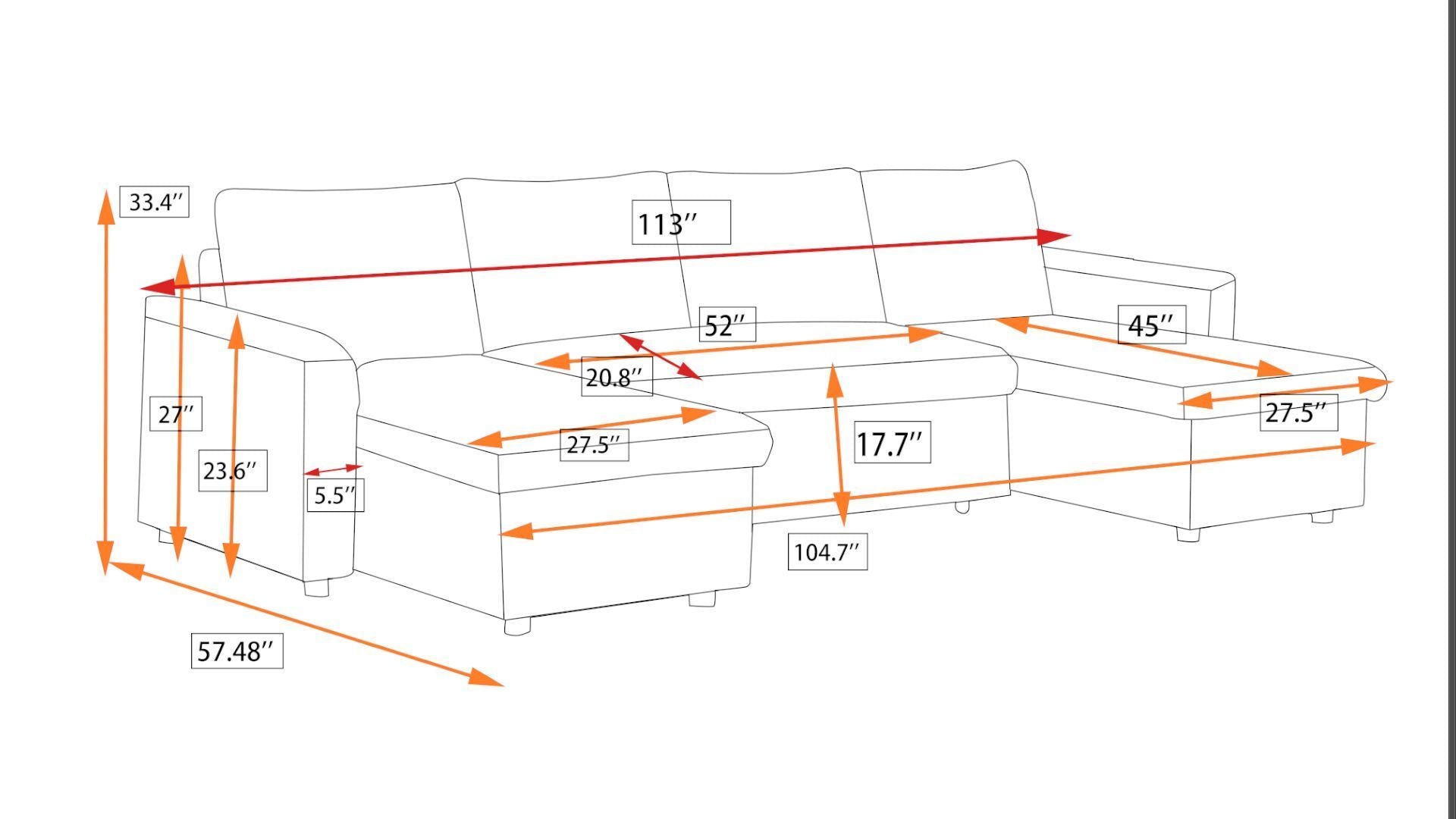 ArtemaxSleeper Sofa, 113 inch Pull Out Overisze Couch Bed, Sectional Sleeper Sofa with Double Chaise