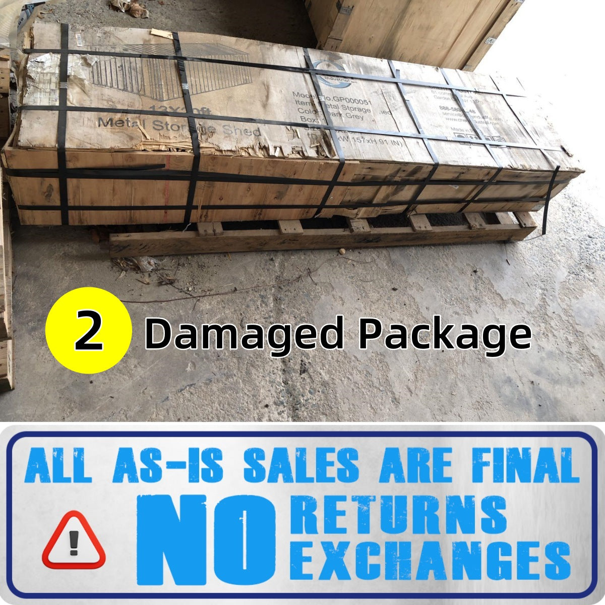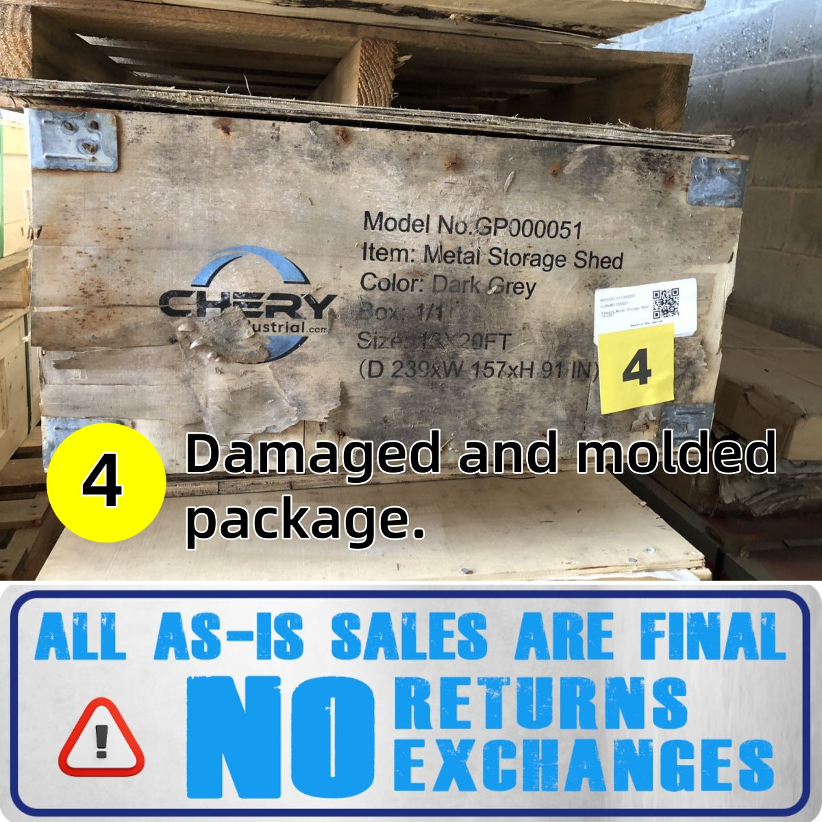 The **[AS-IS] 13’x20′ Metal Storage Shed with Double Front Doors** is a durable storage solution, though it has minor scratches and damaged packaging due to being a returned item. Sold as-is, this shed is perfect for those who can address the cosmetic issues. Available for pick-up only, with no returns accepted, it’s ideal for restoration or customization projects.