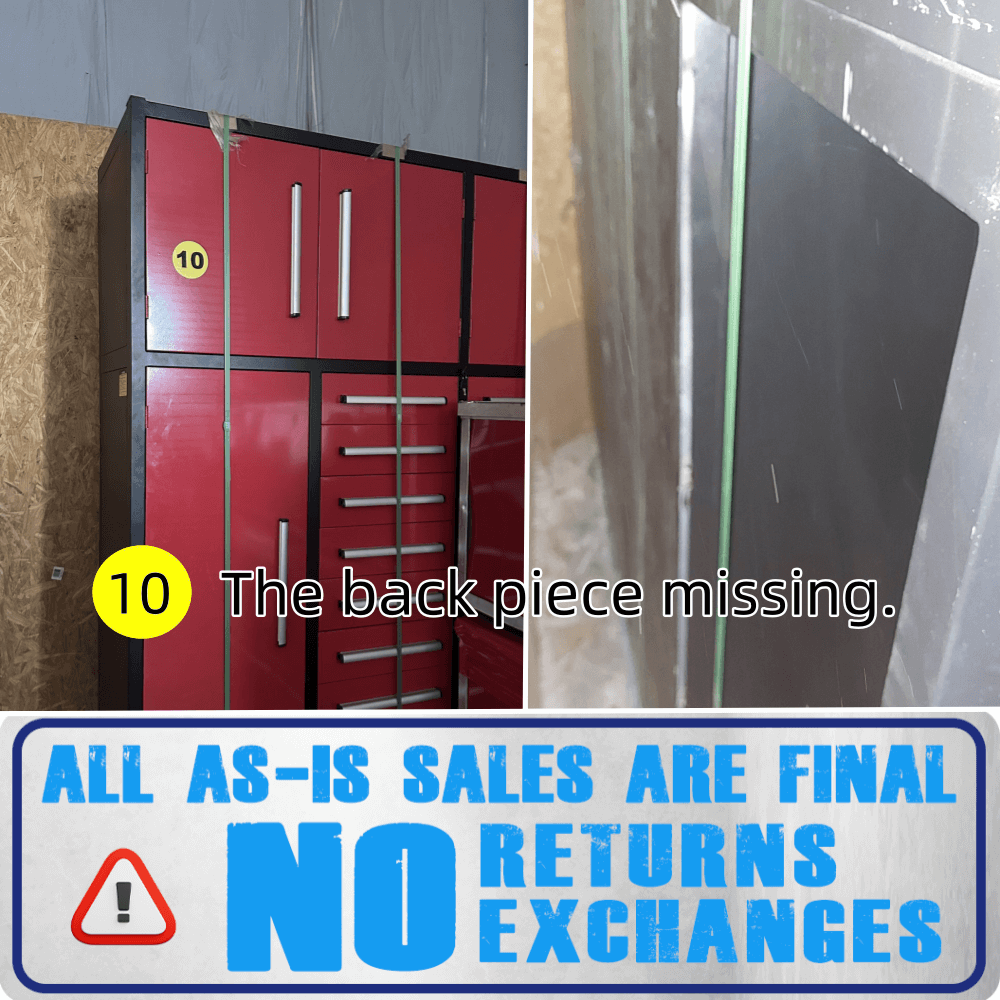 [AS-IS] 7ft Garage Storage Cabinets with 16 Drawers. The back piece is missing, but the unit is otherwise fully functional. Offering ample storage with 16 spacious drawers, it’s perfect for organizing tools and equipment in your garage or workshop. Durable and practical for all your storage needs.