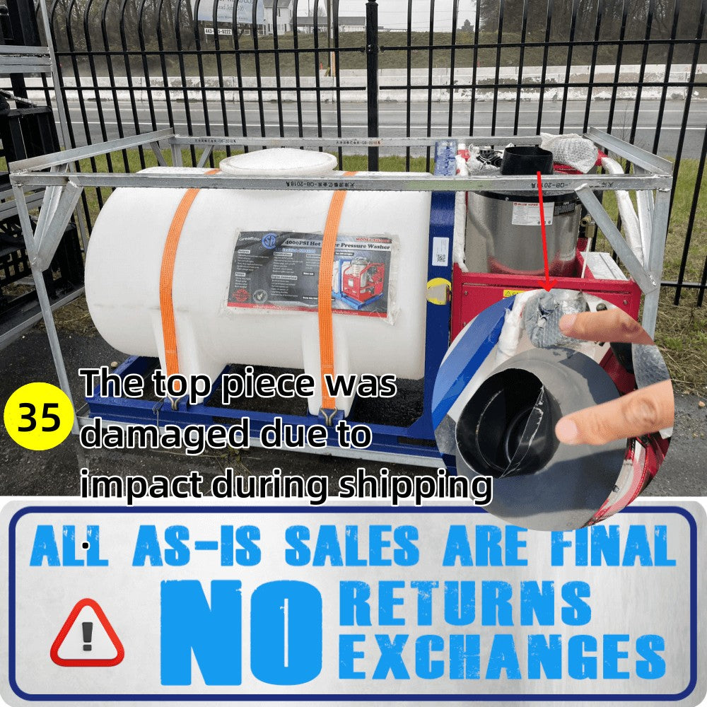 Introducing the [AS-IS] Hot Water Pressure Washer, a commercial-grade powerhouse! With a maximum PSI of 4000, it’s perfect for tough cleaning jobs. Despite minor wear, it’s fully functional and ready to tackle any task. Featuring a 1.7-gallon fuel tank and 18LPM flow rate, it’s a reliable choice for your cleaning needs.