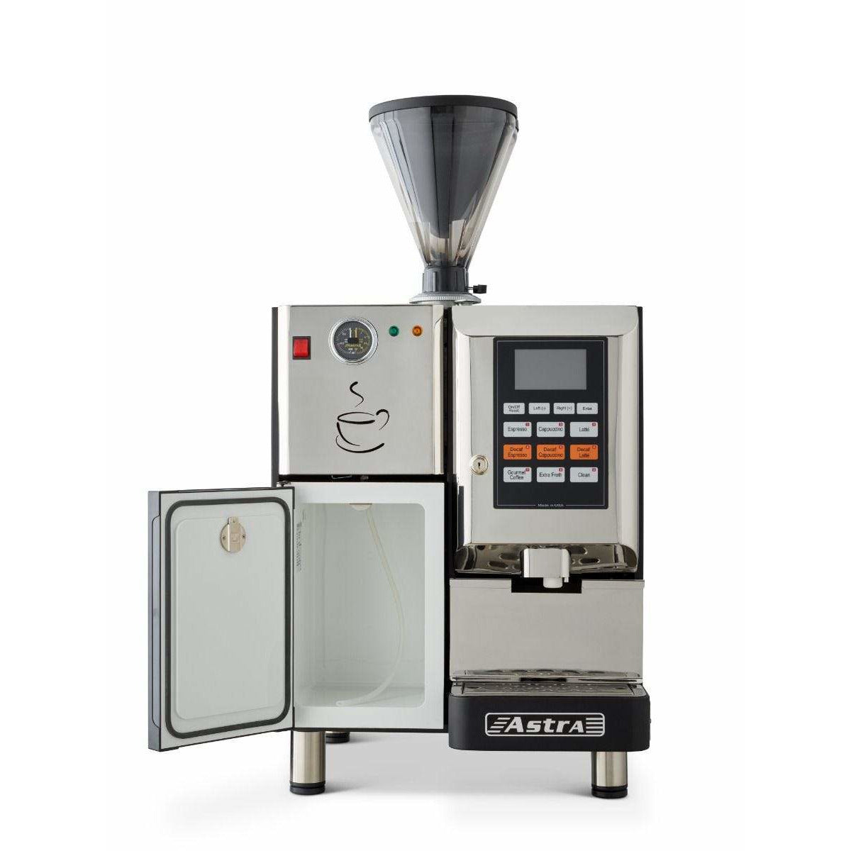 Astra Super Automatic Commercial Espresso Machine, Single Hopper with Refrigerator