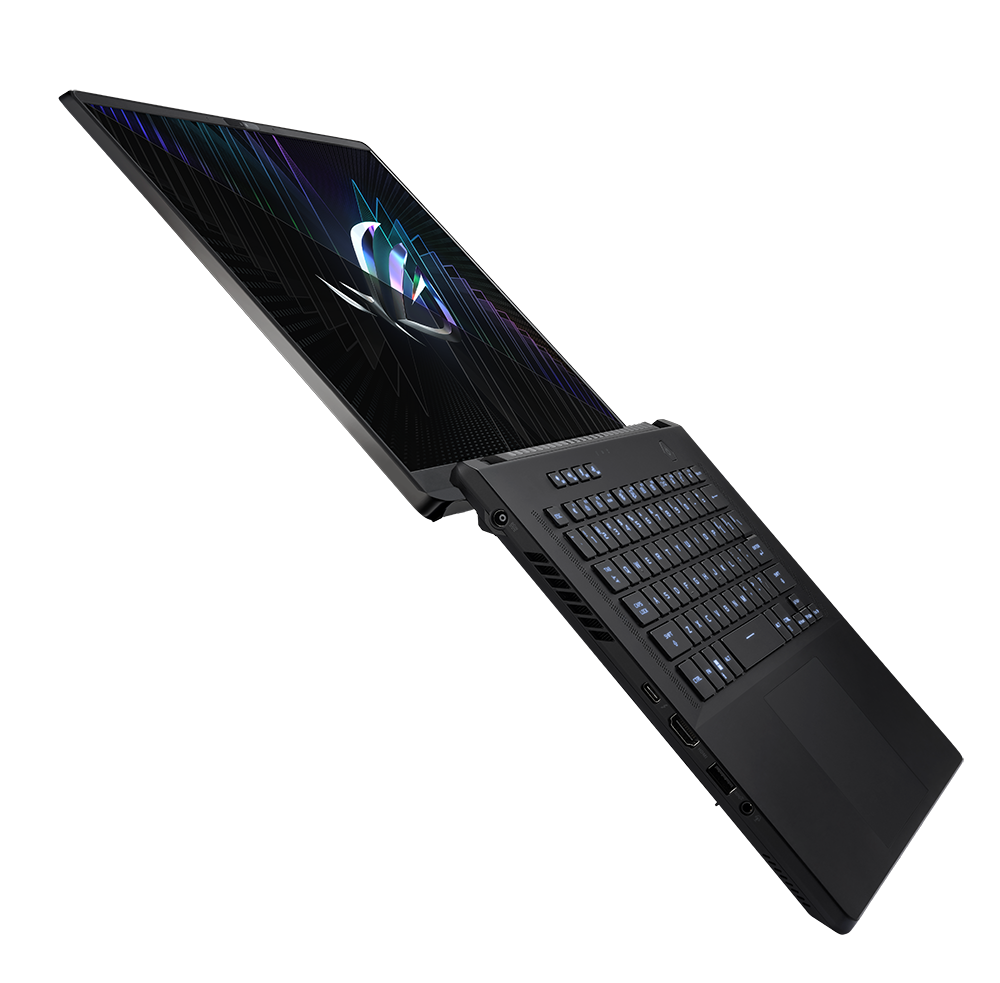 For gamers who demand the absolute best motion and image clarity, the Zephyrus M16 offers an incredible Nebula HDR Display with a 240Hz refresh rate, 100% DCI-P3 coverage, and a staggering 1100 nits of peak brightness for stunning HDR gameplay. The 16-inch, 16:10 Mini LED panel provides incredibly deep blacks for content that jumps right off the screen, whether you’re watching a movie or playing a fast-moving arena shooter. On models without the Mini LED panel, the max brightness peaks at 500 nits, but both panels share QHD resolution and a 240Hz refresh rate, and all models share an incredible 92% screen-to-body ratio.