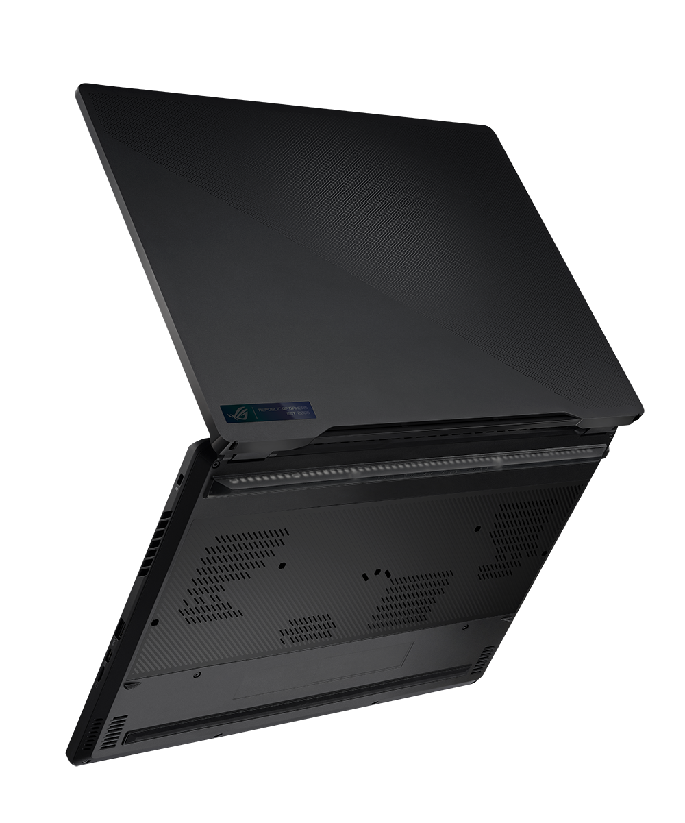 For the first time, the M16 will feature an AniMe Matrix™ display. With 18,710 precision machined holes on the lid of the machine, animations are crisper and cleaner than ever before. For models without the AniMe Matrix™ LED array, the perforations are covered with Monochrome Film, allowing the lid to color shift with the light. For 2023, we’re also introducing a new matte black color with an overfiring finish. Helping to complete the stealth look, this finish is also incredibly fingerprint resistant. With four polished side panels and a holographic nameplate, the M16 exudes a sense of style and luxury not seen in standard gaming laptops.