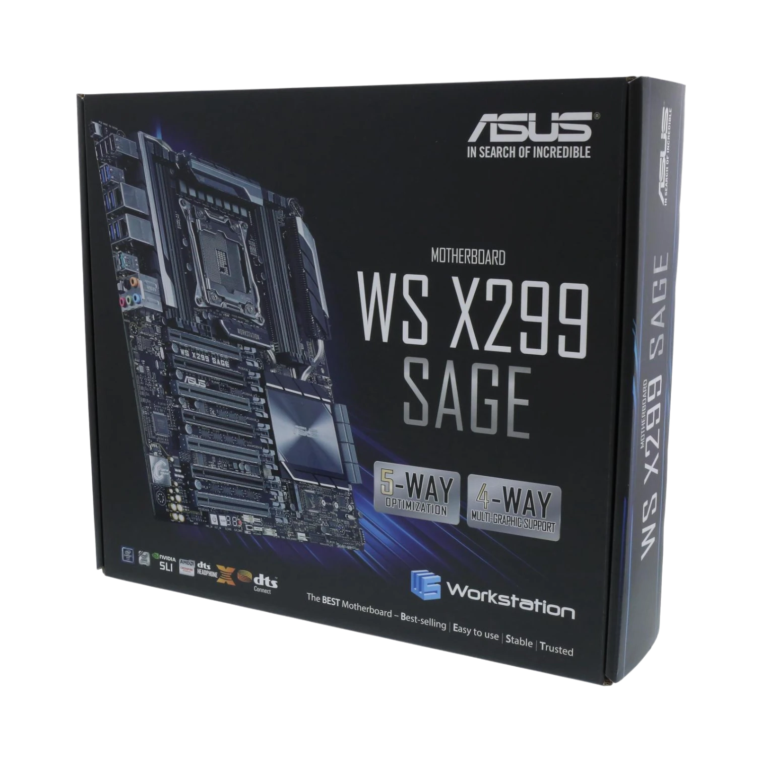 The ASUS WS X299 SAGE is a high-performance motherboard designed to handle demanding workloads with ease. It supports Intel’s Core X-Series processors using the LGA2066 socket, making it a solid choice for professionals and enthusiasts who need reliable power and speed. Whether you’re building a workstation for 3D rendering, video editing, or complex simulations, this motherboard provides the foundation to get the job done efficiently.