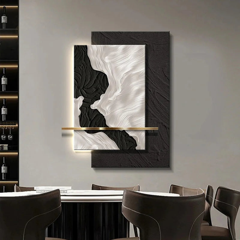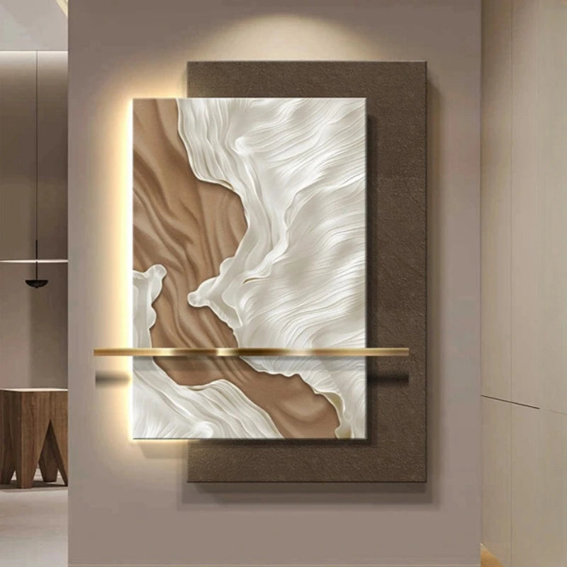 This stunning piece not only illuminates your home but also serves as a captivating work of art, featuring an abstract painting that harmonizes beautifully with the natural blend of wood elements and minimalist colors. Perfect for creating a warm ambiance, this light fixture is a statement of luxury and style, making it an essential addition to any modern decor. Transform your walls into a gallery of light and art, and indulge in the perfect blend of functionality and aesthetic appeal.