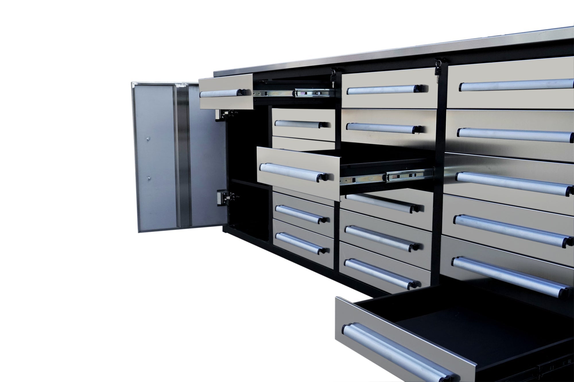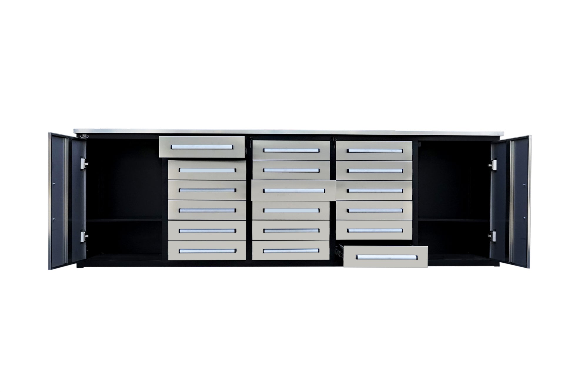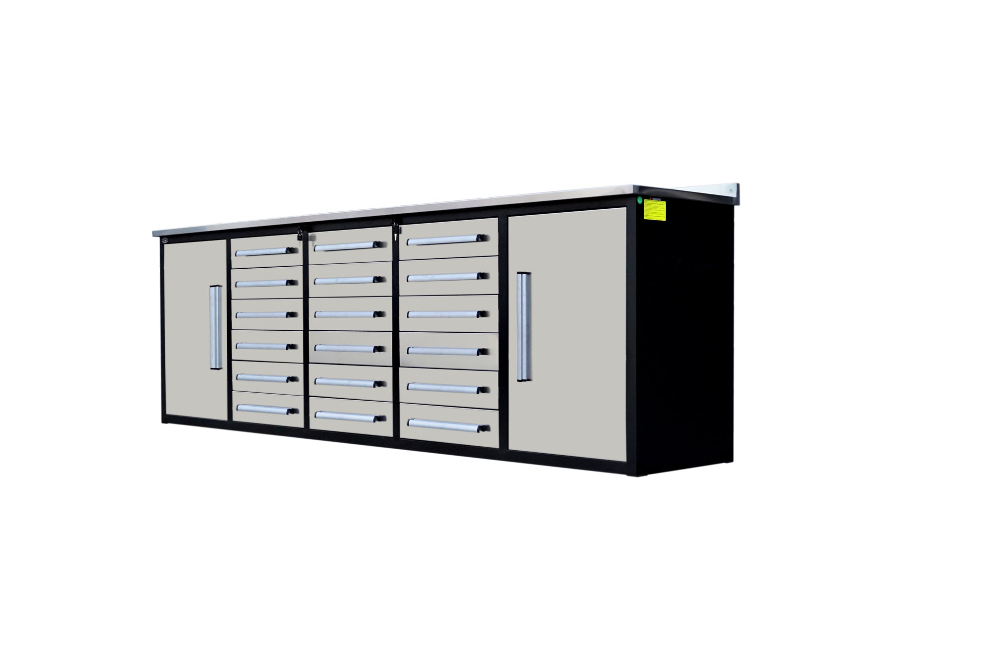 If you are looking for somewhere to store your tools and your equipment, this 10ft Storage Cabinet is absolutely perfect for you. With 18 drawers and 2 cabinets, you can store and organize your tools in the way you want. The frame is strong, which is made of steel, and last long. Moreover, you can even protect your tools more with the lock for the drawers.