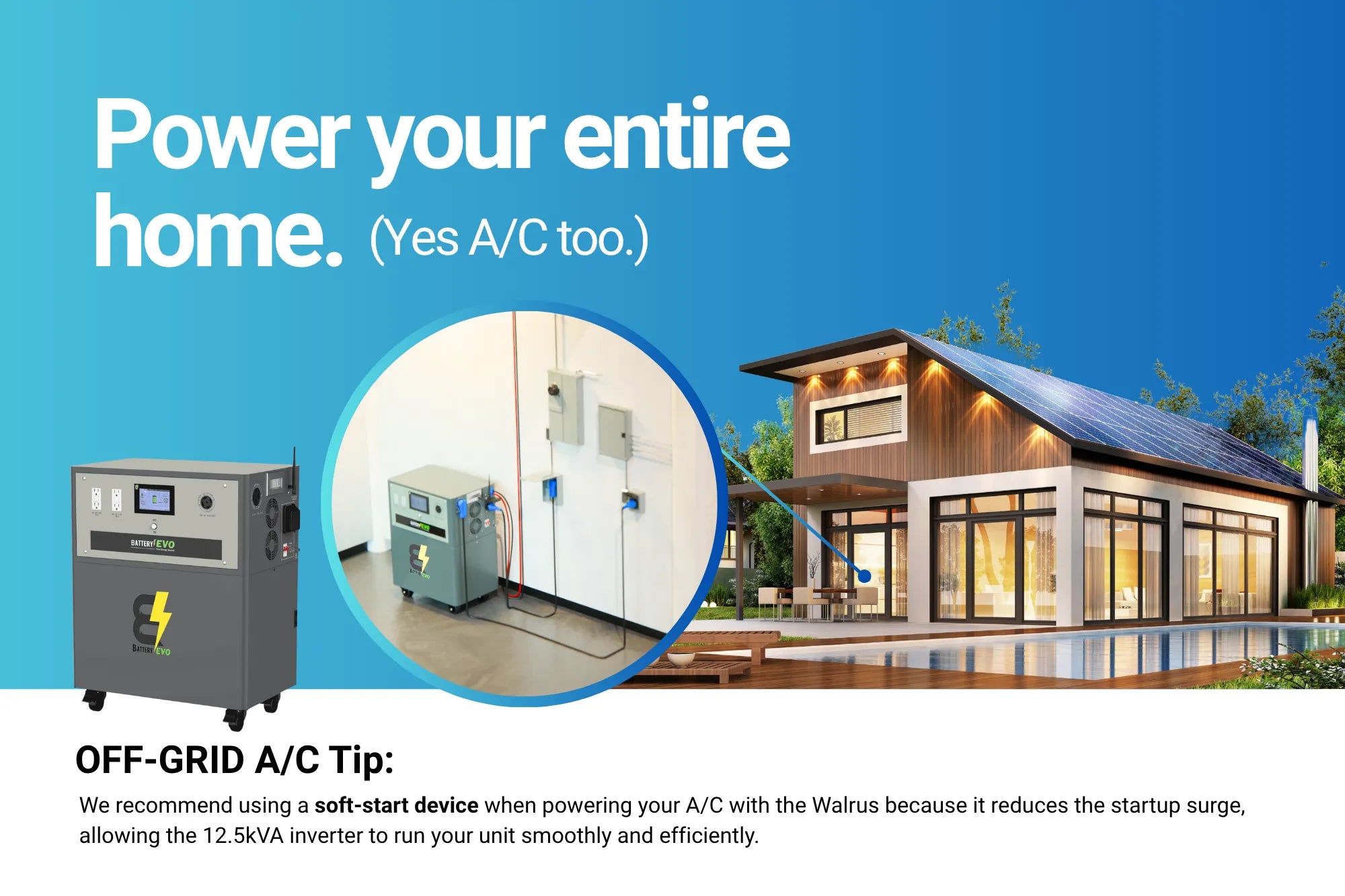 Introducing the BatteryEVO 330Ah 22 kWh AC110/220V WALRUS G3 Battery with an 12.5k Inverter.