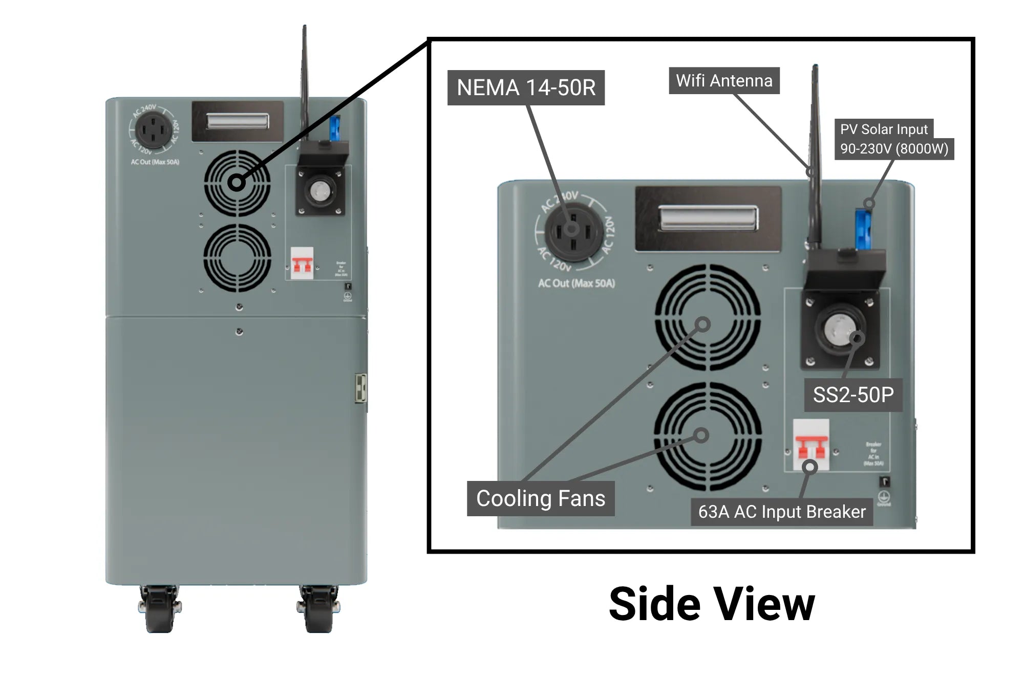 The Walrus main console and side panel includes every port you need to install into your home or use as portable generator.