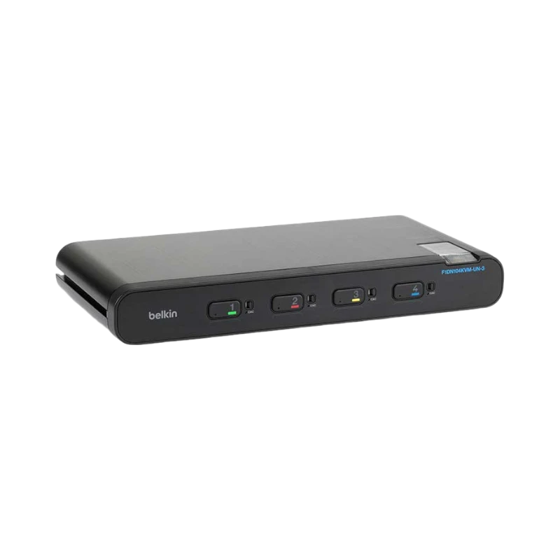 The Belkin F1DN104KVMUN3 is a secure KVM switch that provides four ports and integrated audio, allowing you to operate up to four computers with a single keyboard, mouse, monitor, and set of speakers.