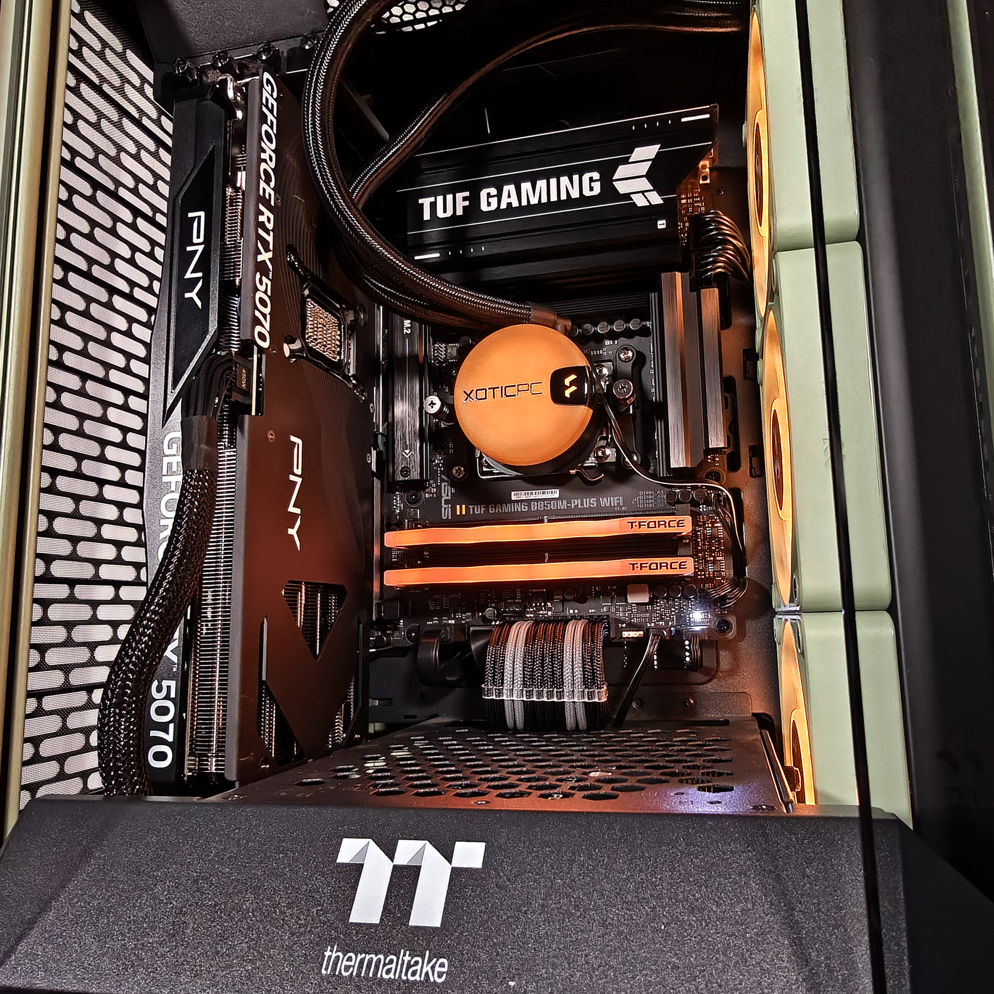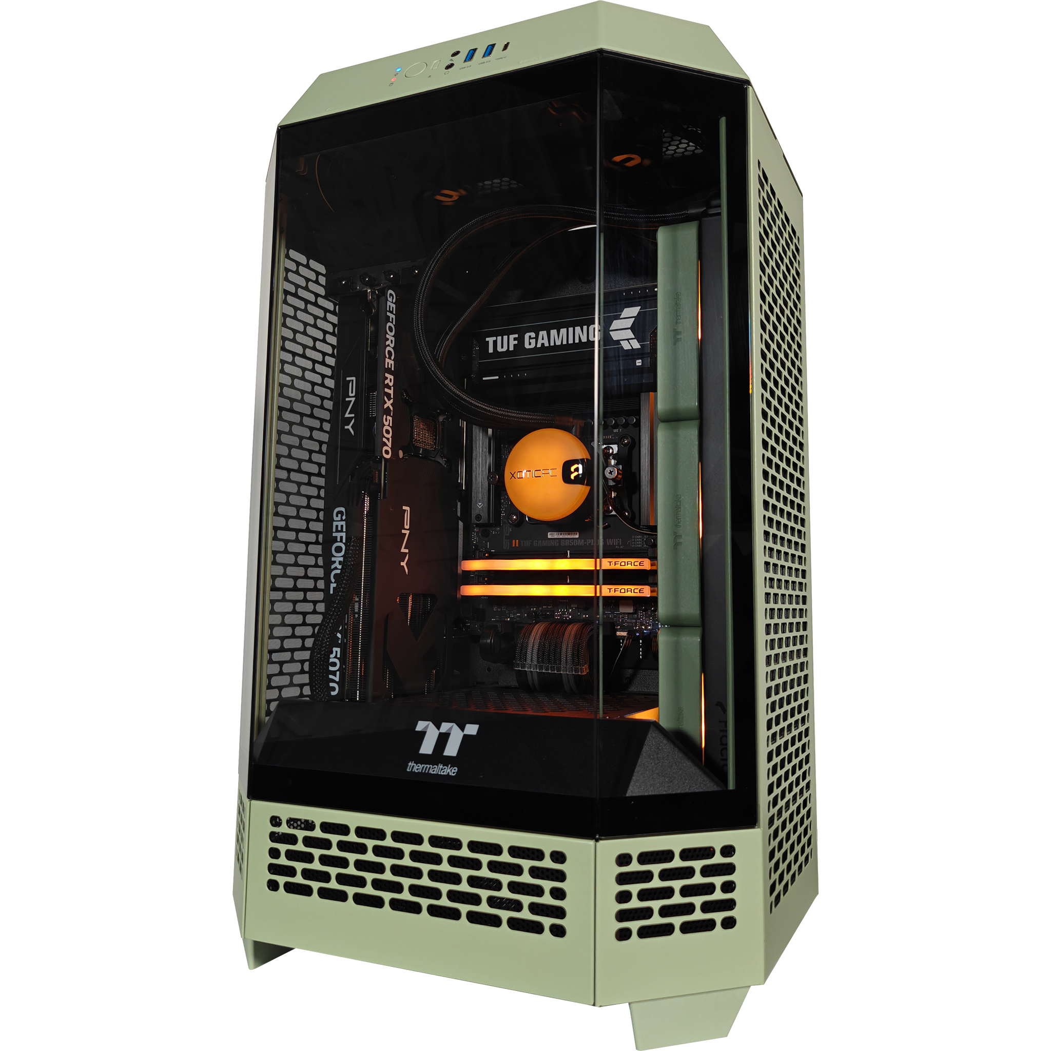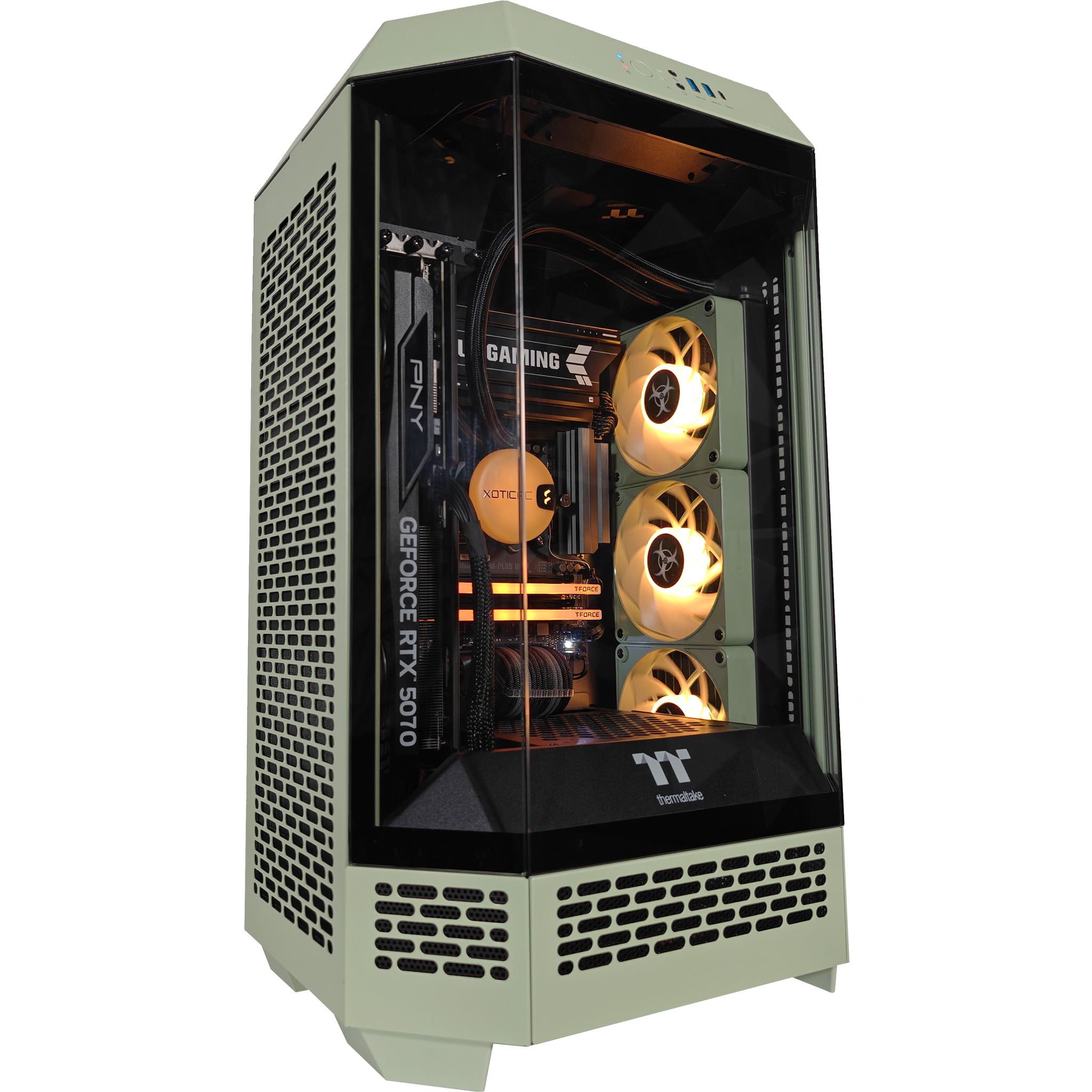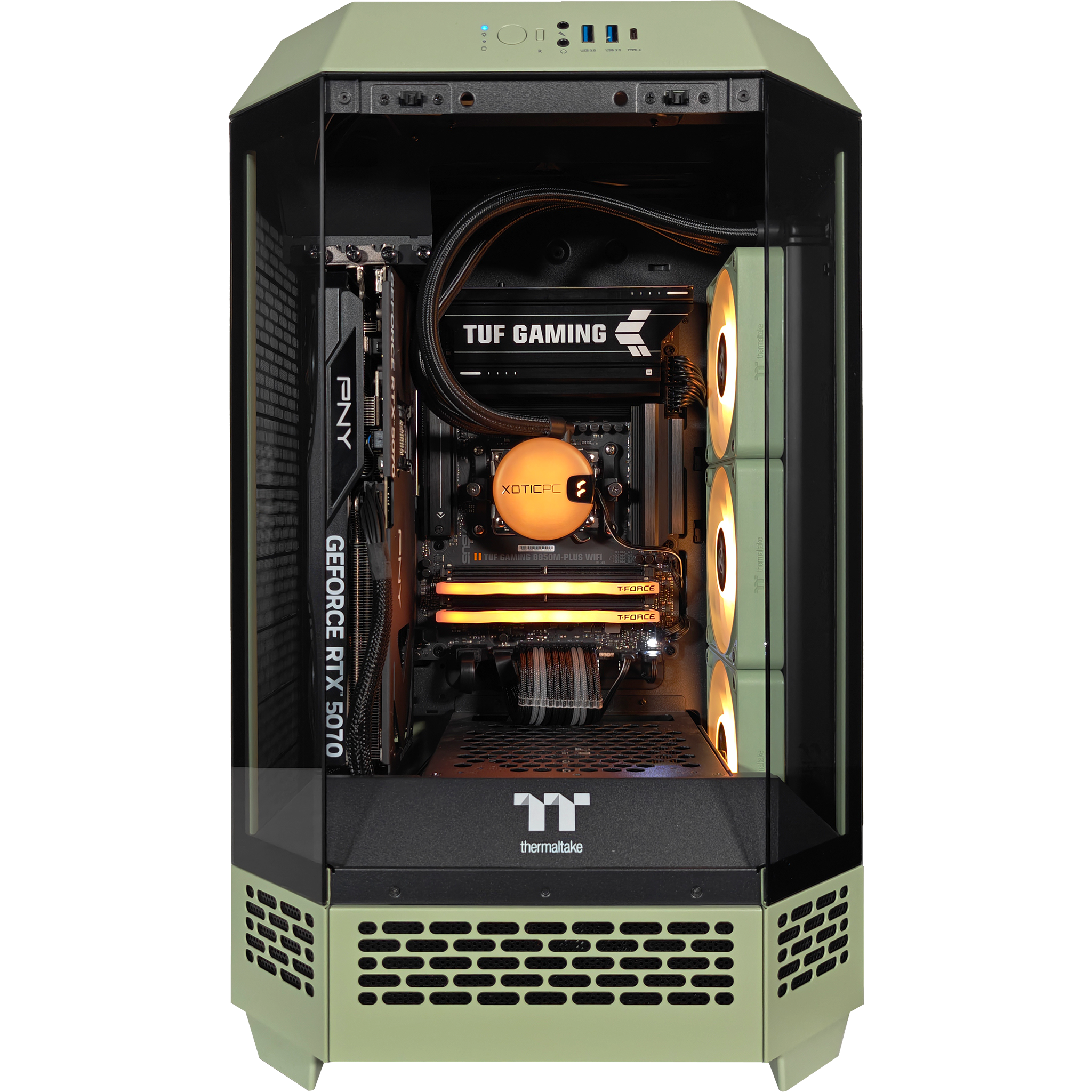 The BioHazard Tower Extreme is a powerhouse m-ATX build designed for gamers who demand next-level performance and style. Featuring an octagonal prism shape and classic vertical case design, this rig maximizes airflow to keep temperatures low even during the most intense sessions. The three 3mm tempered glass panels provide a sleek, modern aesthetic, while its compact footprint ensures it fits seamlessly into any setup. Under the hood, an AMD Ryzen™ 7 9700X and NVIDIA® GeForce RTX™ 5070 12GB GDDR7 deliver buttery smooth gameplay, while 32GB DDR5 6000MHz memory and a 2TB Gen 4 NVMe SSD ensure lightning-fast performance. With Wi-Fi 6, 2.5G LAN, and a feature-packed ASUS TUF GAMING B850M-PLUS WIFI motherboard, you’re always connected and ready to dominate. Cooled by a 360mm AIO liquid cooler with BioHazard Green & Black RGB fans, this build stays chilled under pressure. Complete with Windows 11 Home, a lifetime parts & labor limited warranty, and XOTIC PC’s Future Trade-In Program, the BioHazard Tower Extreme is built for those who refuse to compromise.