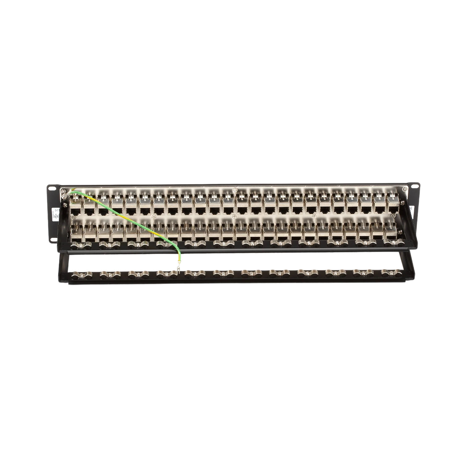 The Black Box JPM816A is a CAT6 48-Port Feed-Through Patch Panel designed to simplify network organization and cable management in standard 19-inch racks. Built with durable steel, this patch panel provides a straightforward way to connect and manage up to 48 RJ-45 cables without the need for punching down wires, making installation faster and less prone to errors.