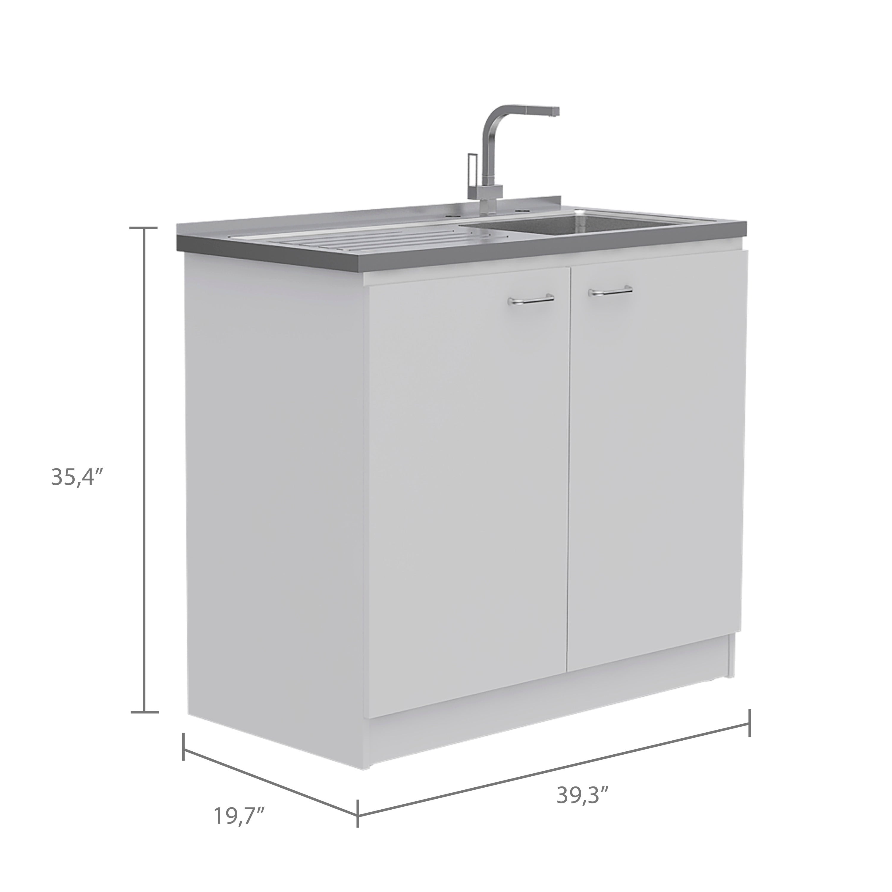 From the kitchen to the laundry room to the garage, this contemporary utility sink and cabinet create wonderful functionality. The base cabinet features two doors and ample interior storage, while the countertop and sink provide a multi-functional workspace. FAUCET NOT INCLUDED