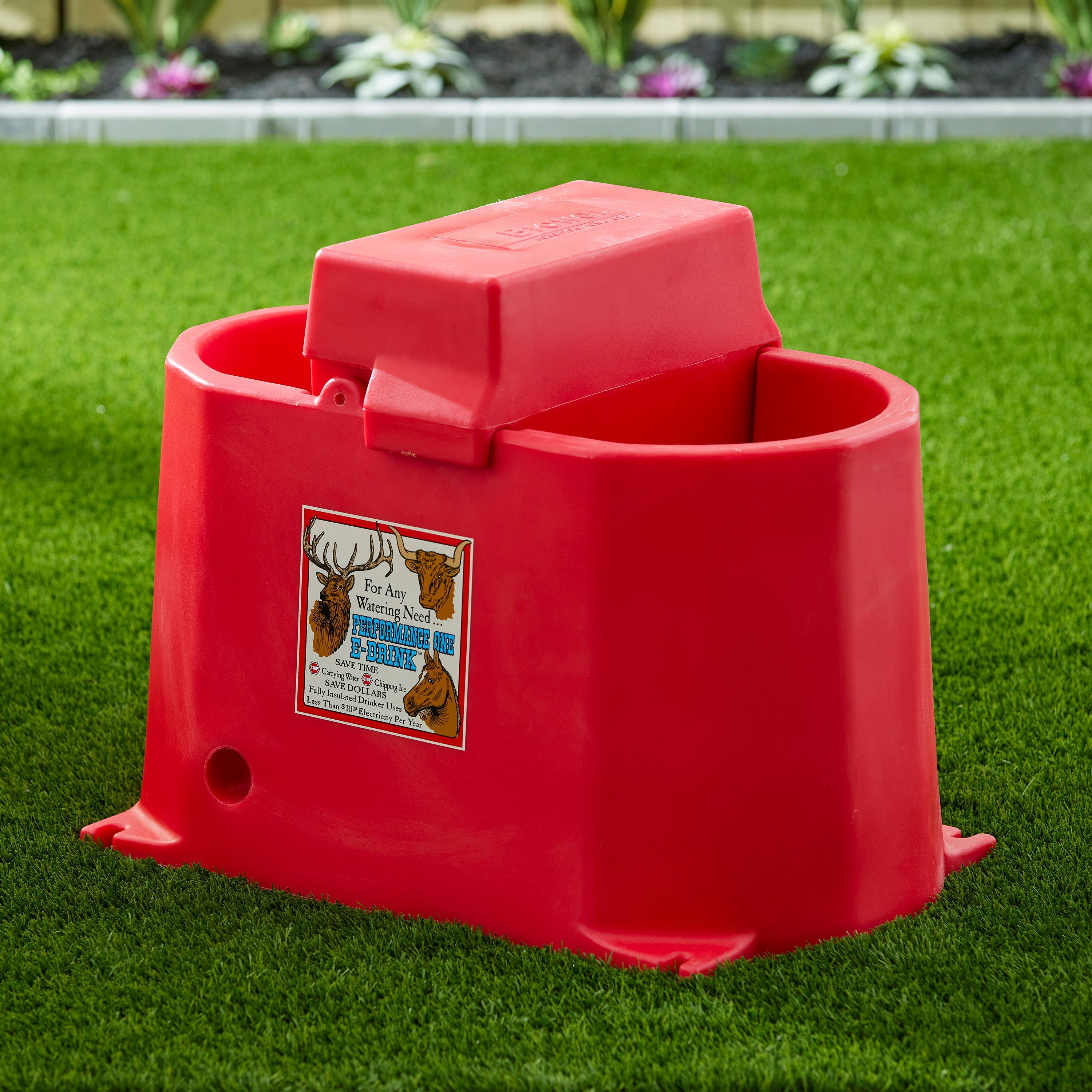 - 17-gallon electrically heated livestock drinker for indoor and outdoor use