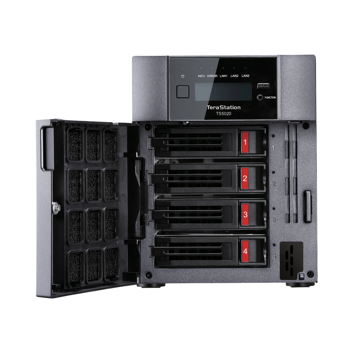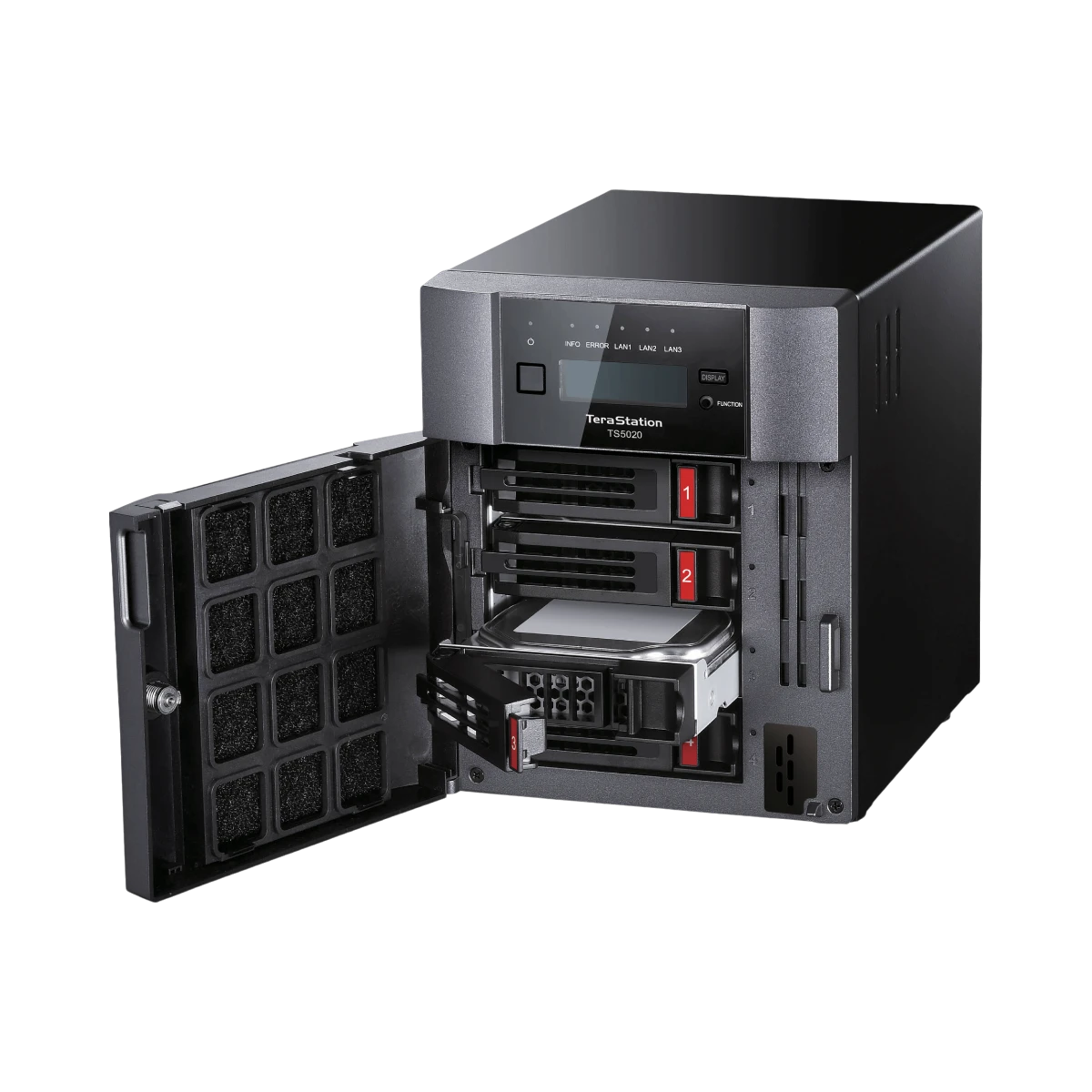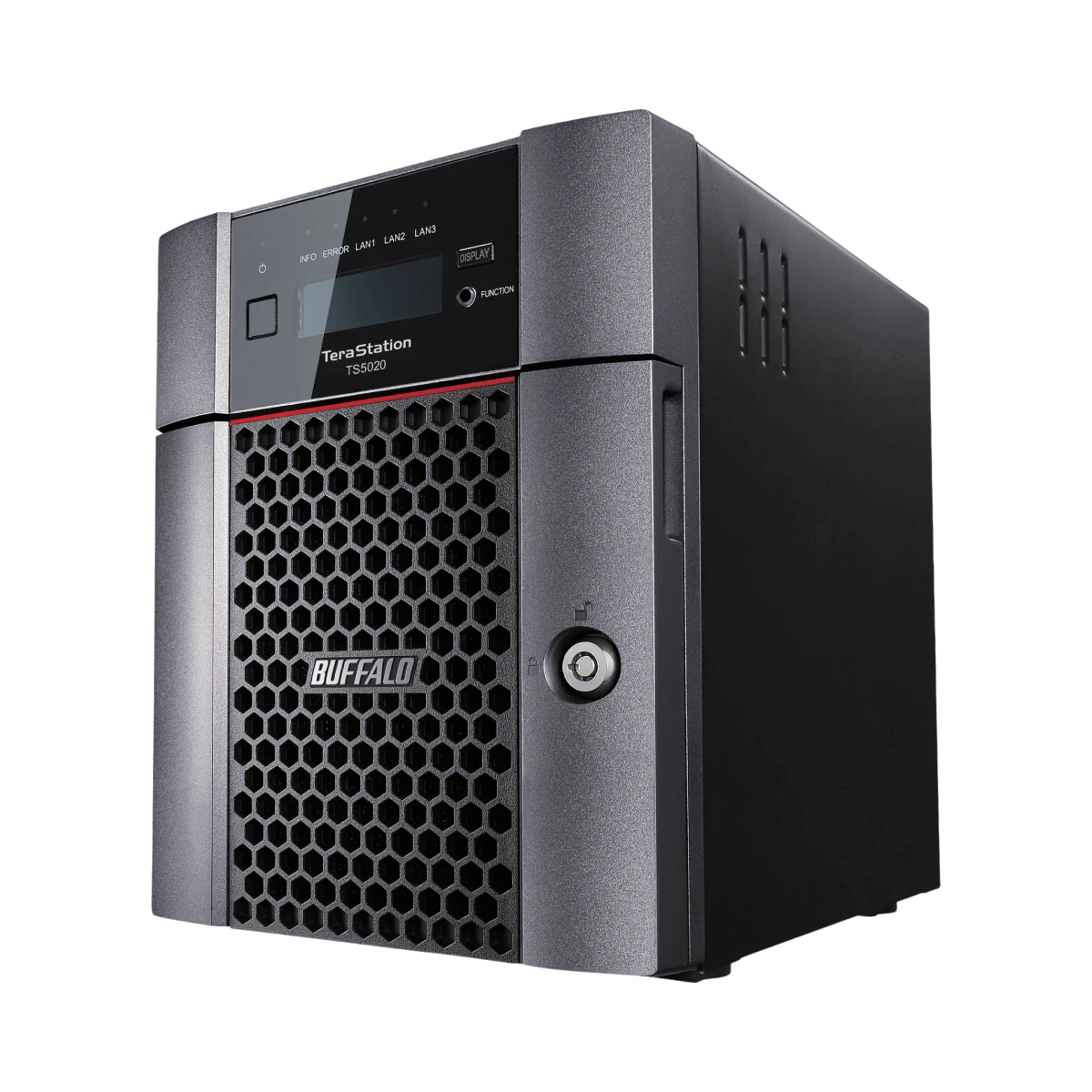 The Buffalo TS5420DN4002 is a desktop network attached storage server with four drive bays that gives small offices, creative studios, and IT departments a straightforward way to centralize and protect up to 40 TB of data. It arrives with two preinstalled 20 TB hard drives, so you can begin backing up workstations or collecting media libraries immediately.