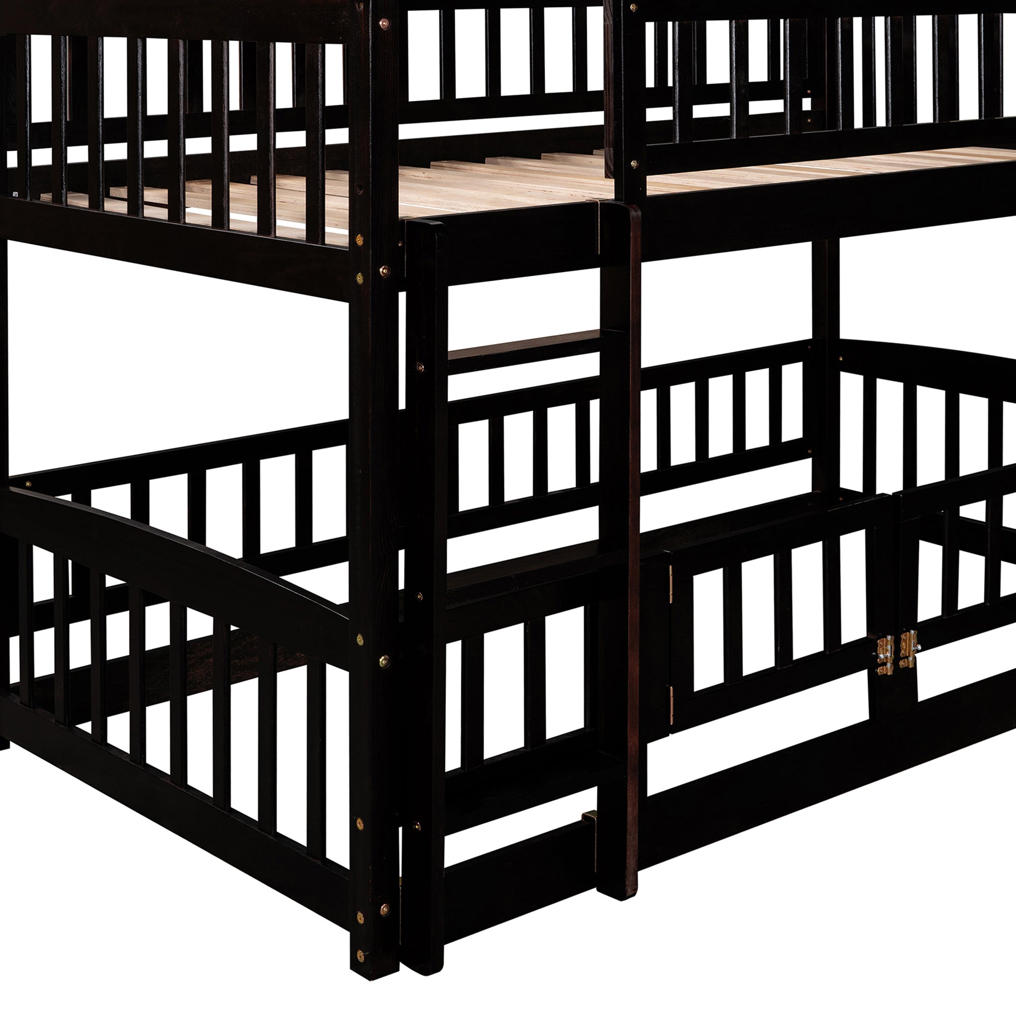 Bunk Bed with Slide,Full Over Full Low Bunk Bed with Fence and Ladder for Toddler Kids Teens Espress