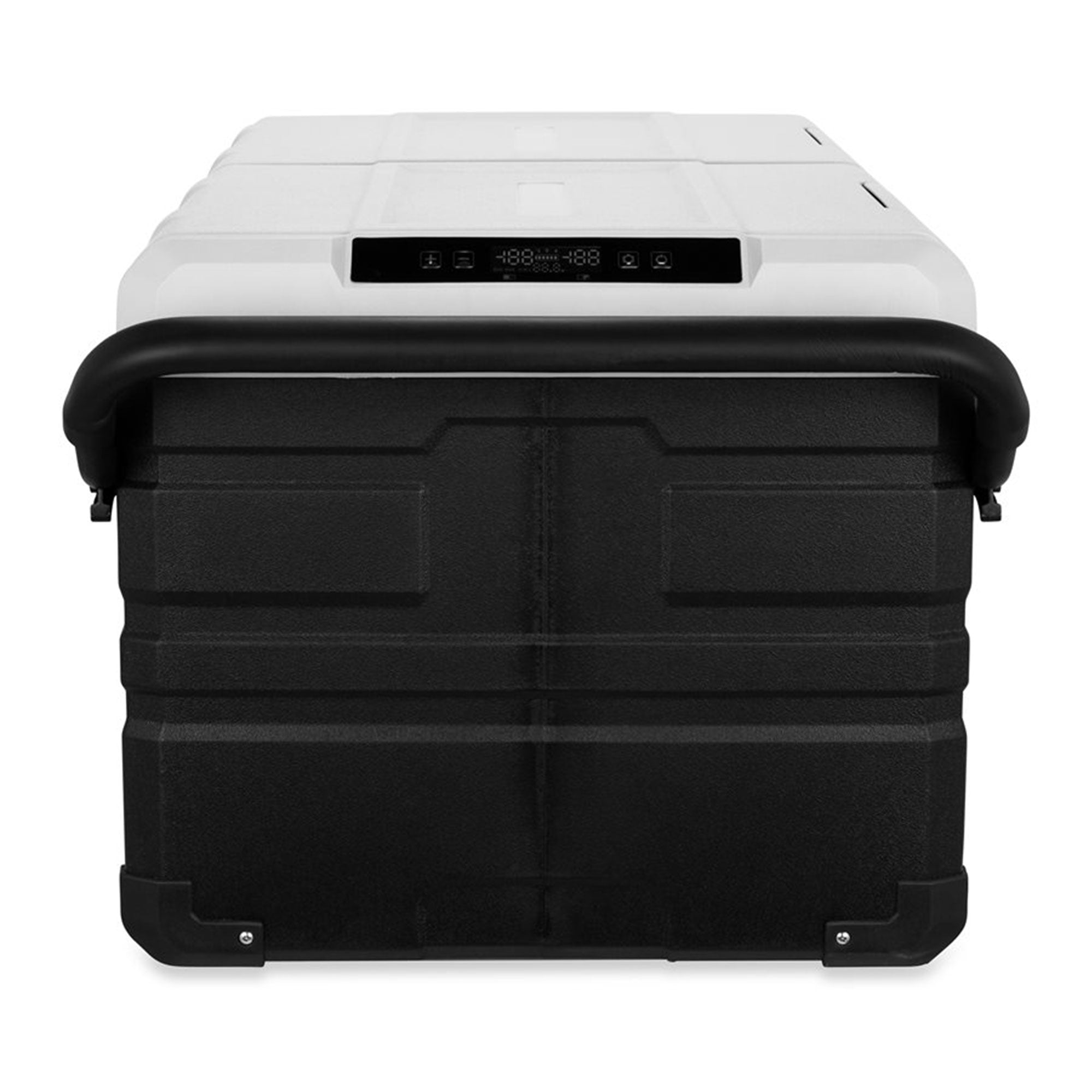 Keeping your food and drinks cold on-the-go, the large-capacity portable fridge features dual zone cooling with 2 compartments that independently cool or freeze your items. The temperature adjusts from the convenient and easy-to-use LED control panel with digital display, letting you change the temperature from 68 degrees Fahrenheit all the way down to -4. Each compartment features a removable wire basket to maximize organization, and LED lights illuminate the interior even at night. Travelling anywhere on 2 rolling wheels, the cooler is easy to move with an extendable aluminum pull handle.