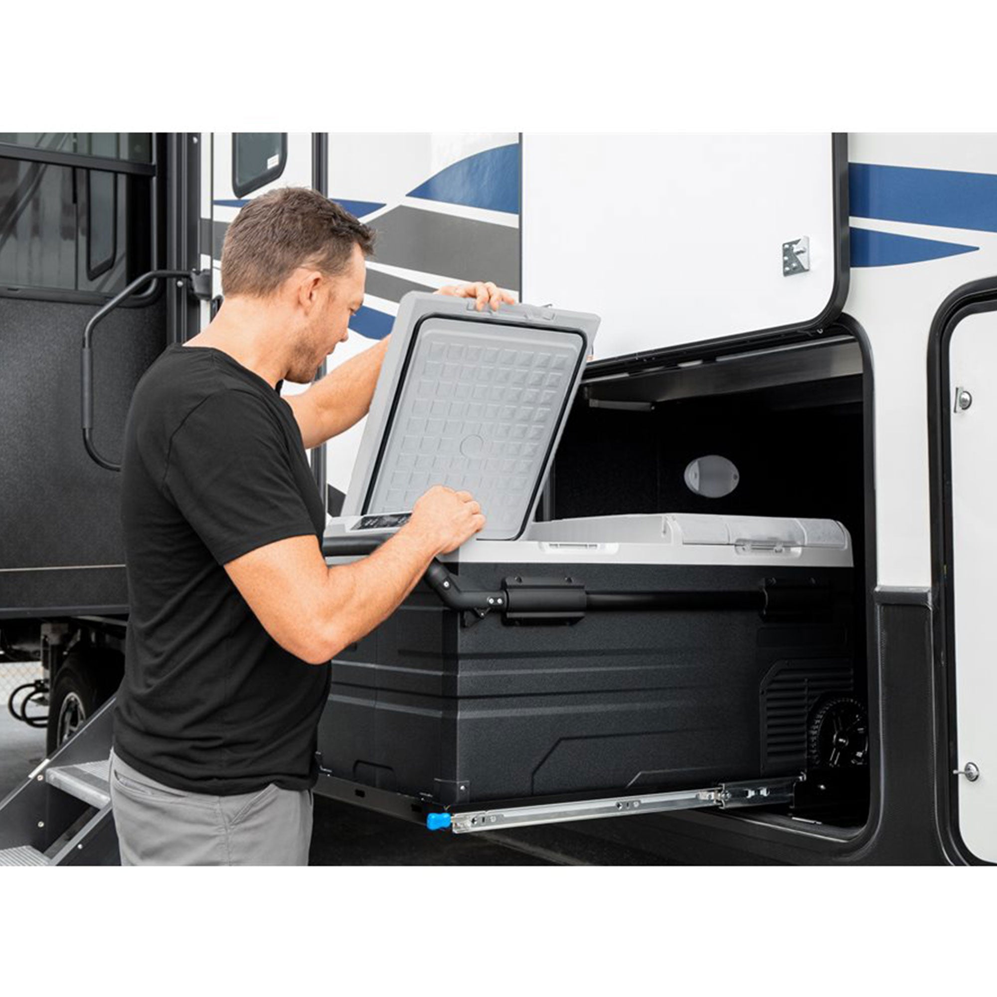 Take your favorite meals on your next trip with the Camco 95-Liter Portable Refrigerator.