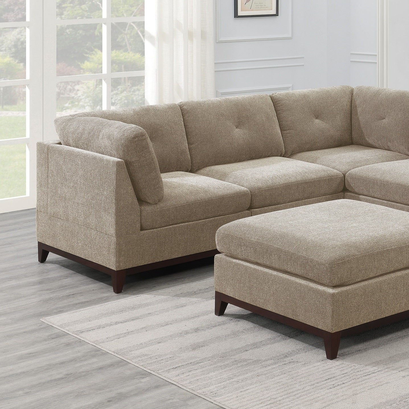 Be the first to review “Camel Chenille Fabric Modular Sectional 6pc Set Living Room Furniture Corner Sectional Couch 3x Corner Wedge 2x Armless Chairs and 1x Ottoman Tufted Back” Cancel reply