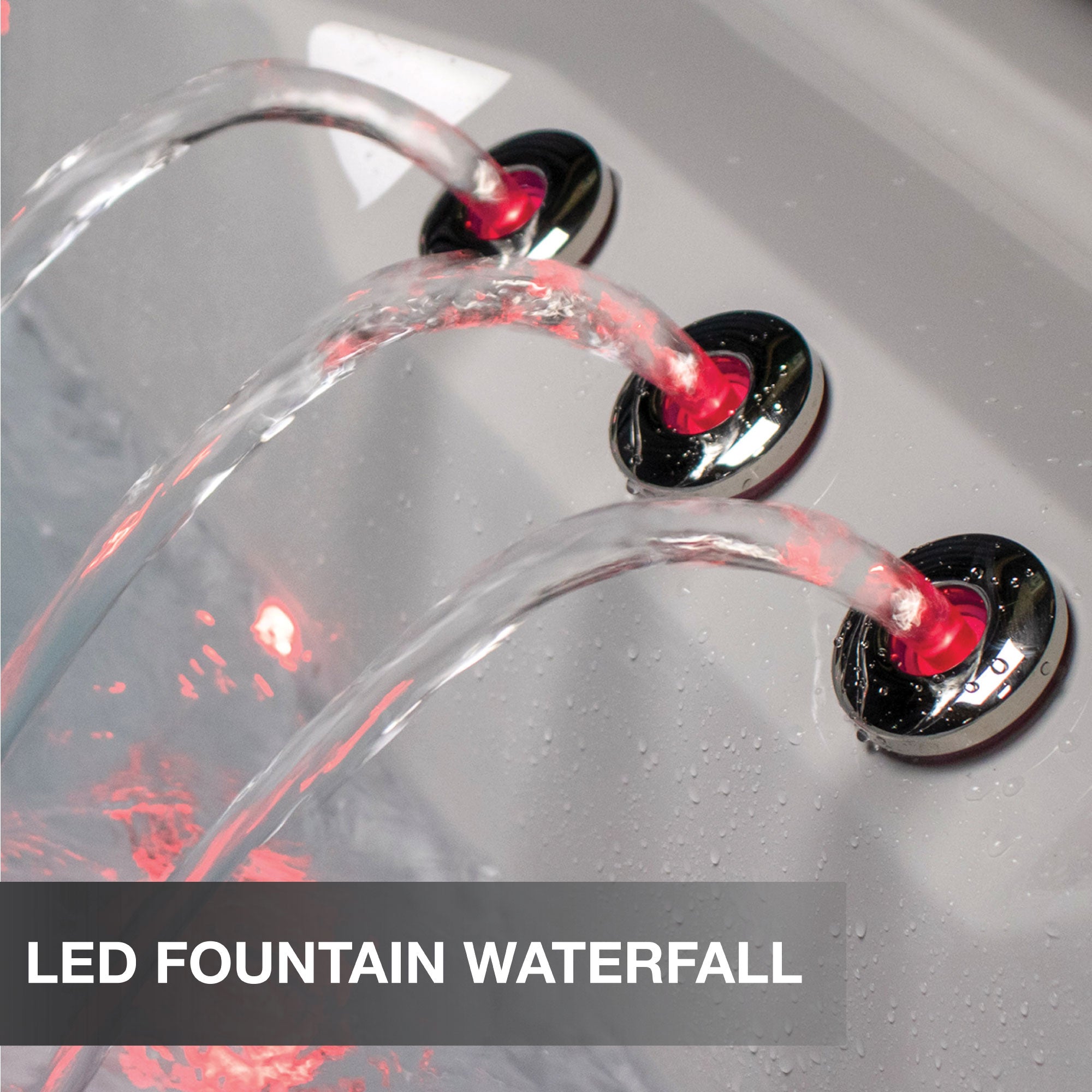 Relax to the soothing sound of our Cascading or Fountain waterfalls. Customize the waterfall pressure and LED light settings for your desired ambiance.