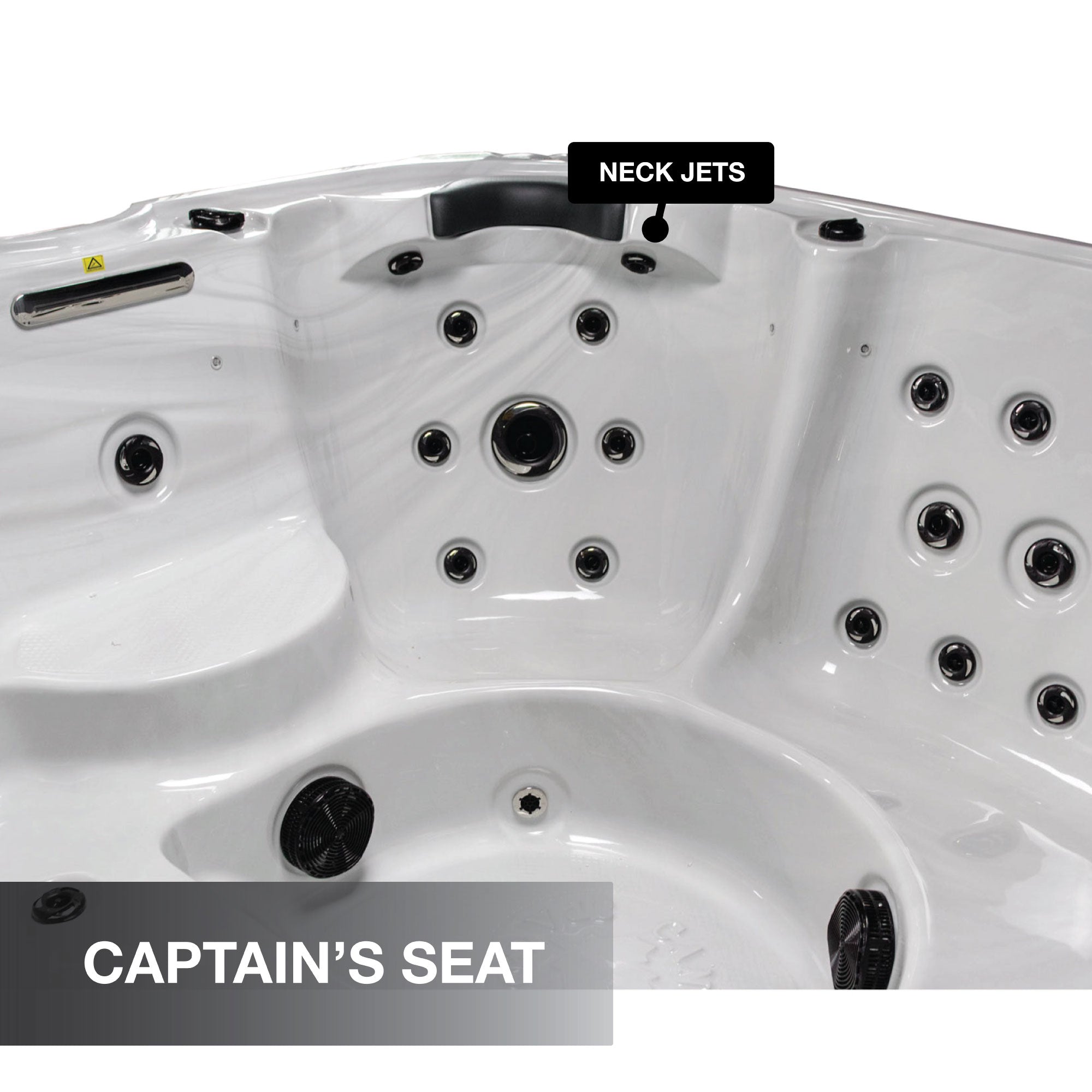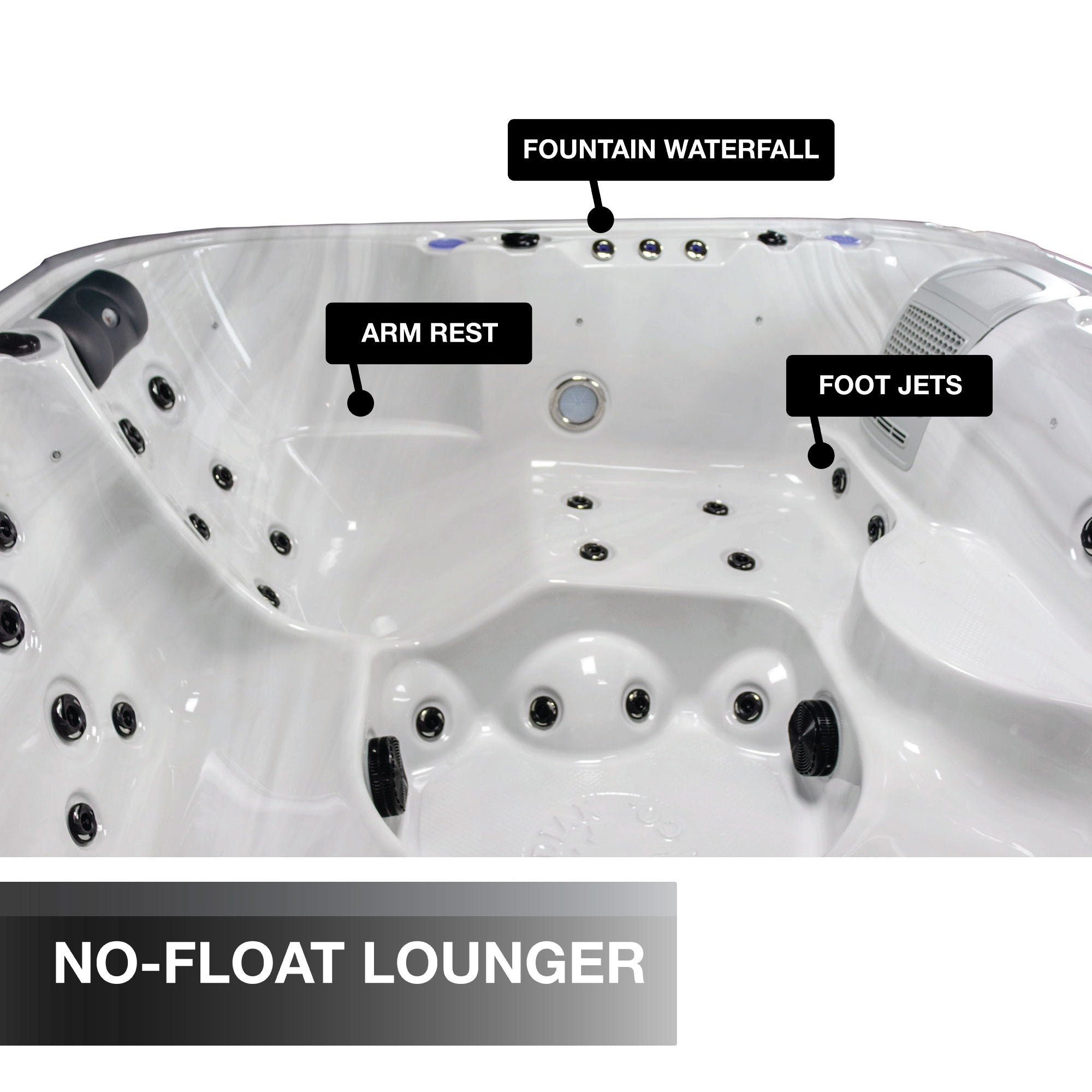 • Multi-level seating including a full-length no-float lounger, a deep captains chair, and open bench seating to target hard-to-reach areas