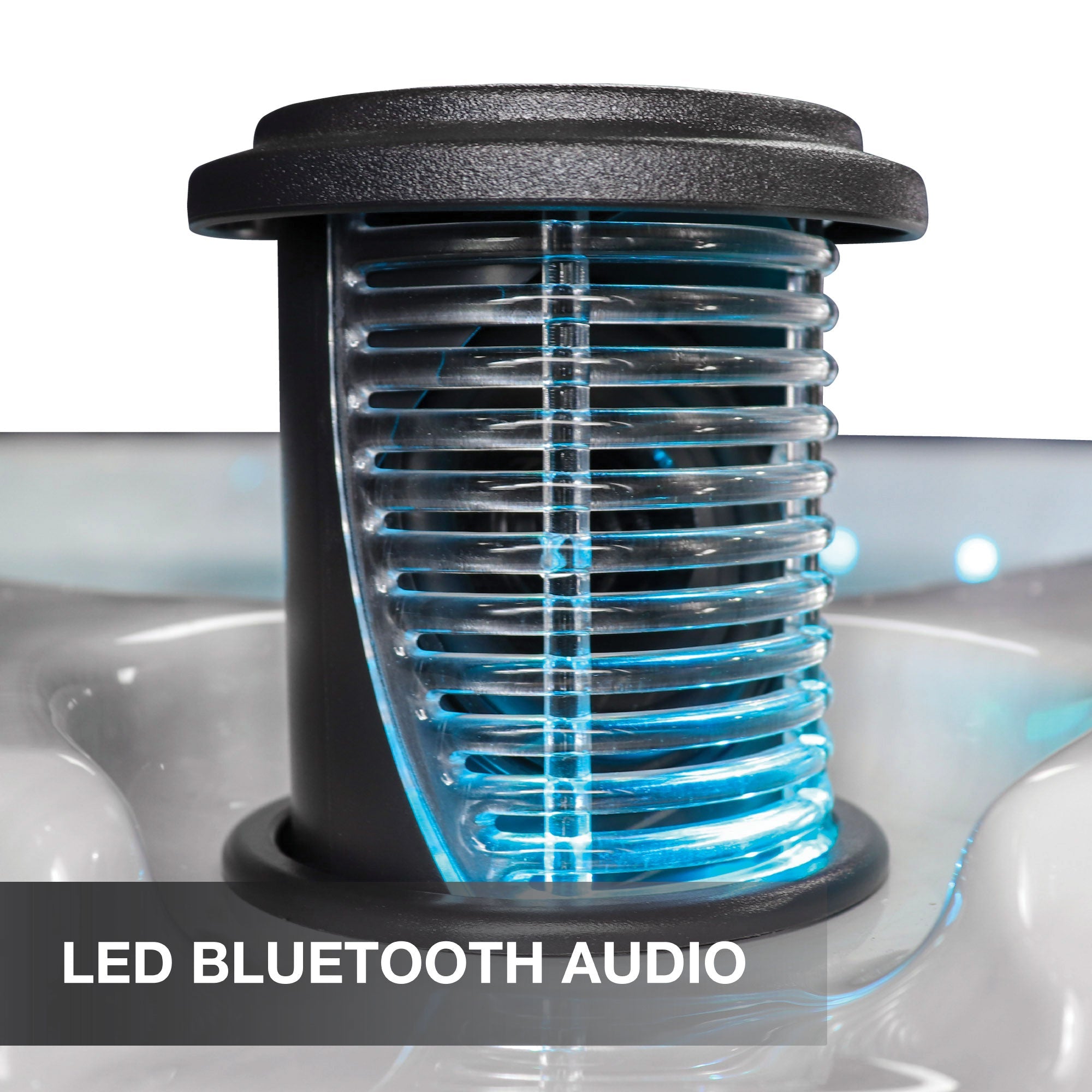 • Premium features include multi-colour LED lighting, cascading and fountain waterfalls, aromatherapy, a built-in Bluetooth Audio System and more
