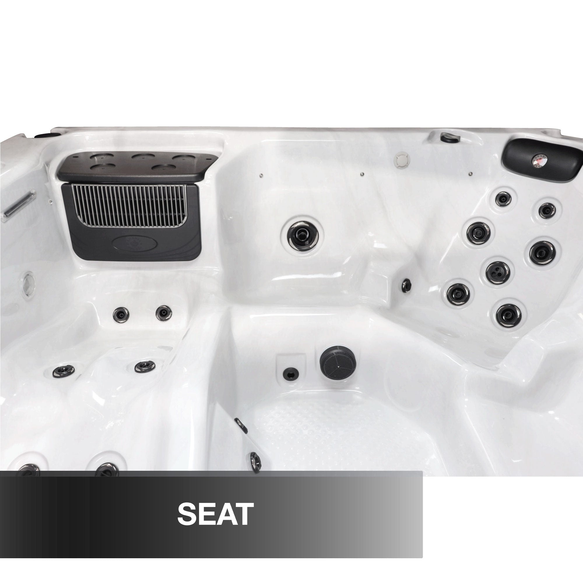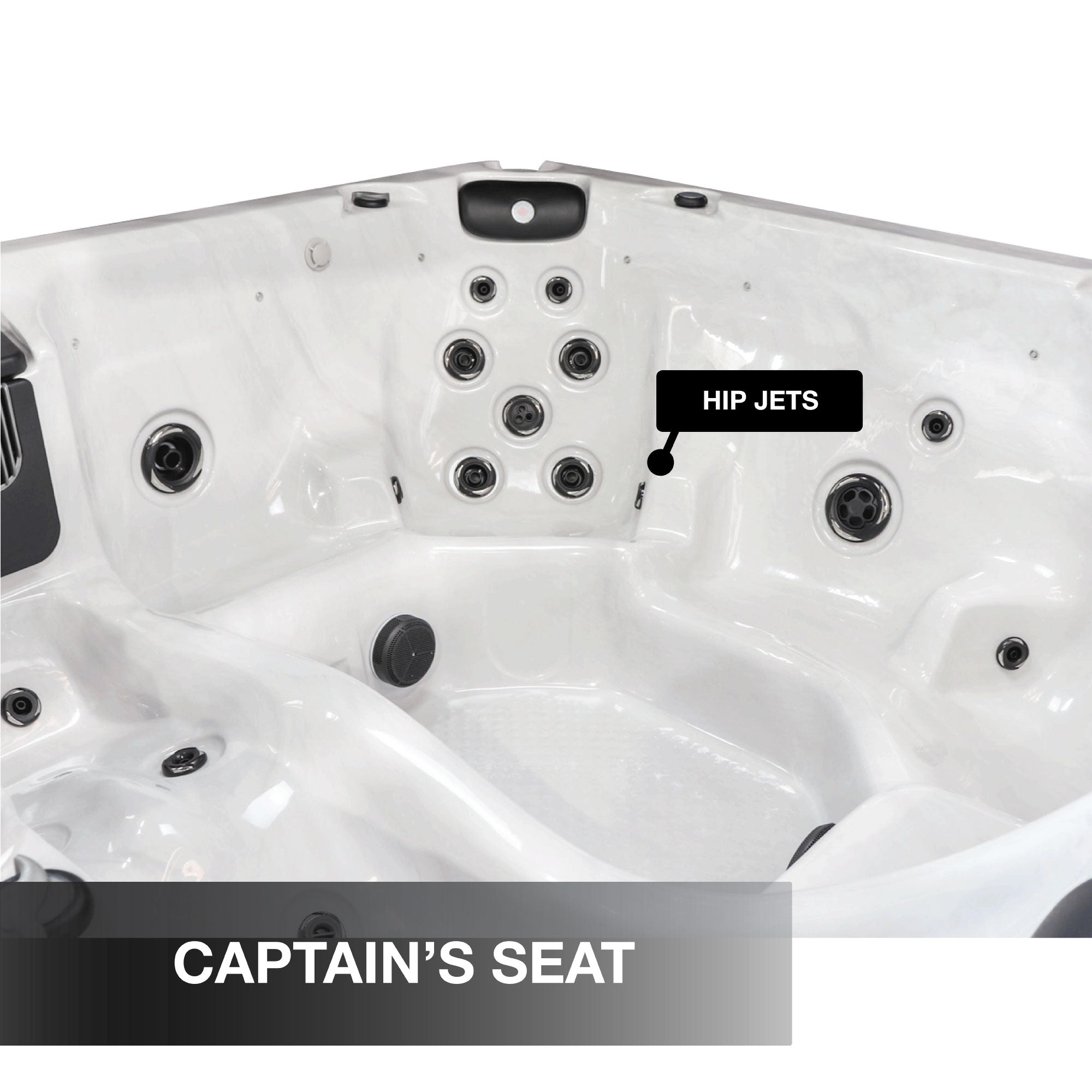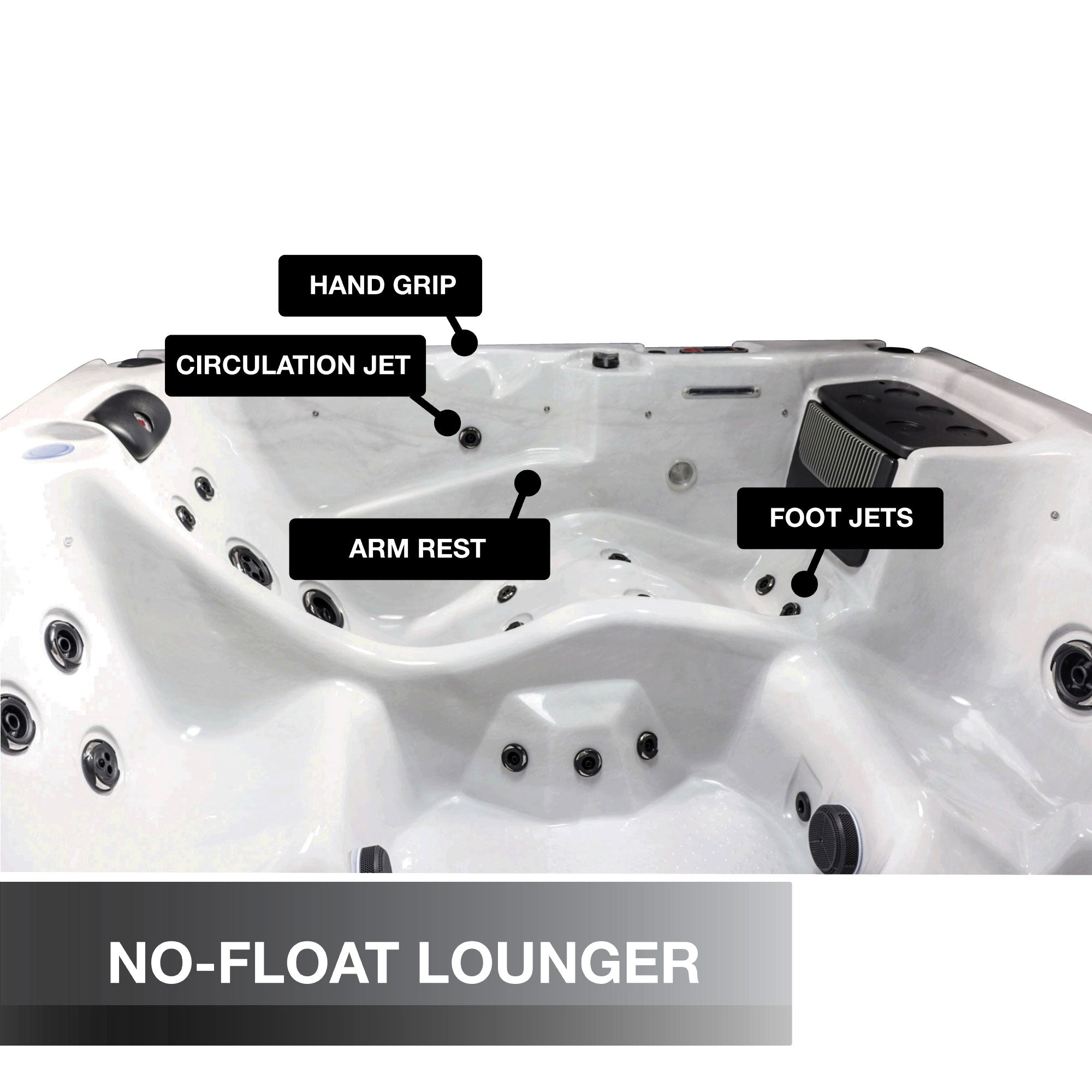 • Multi-level seating including a full-length, no-float lounger and two captains chair you can fully submerge your shoulders in