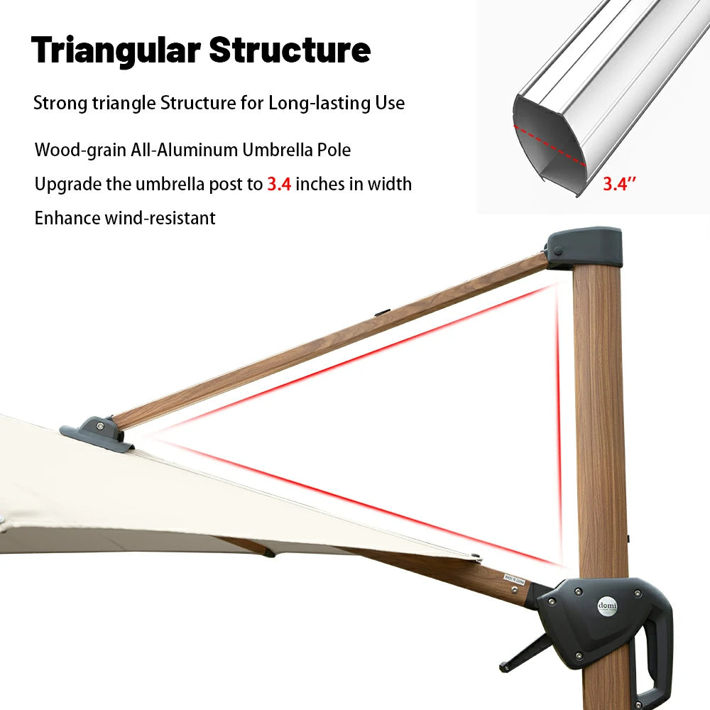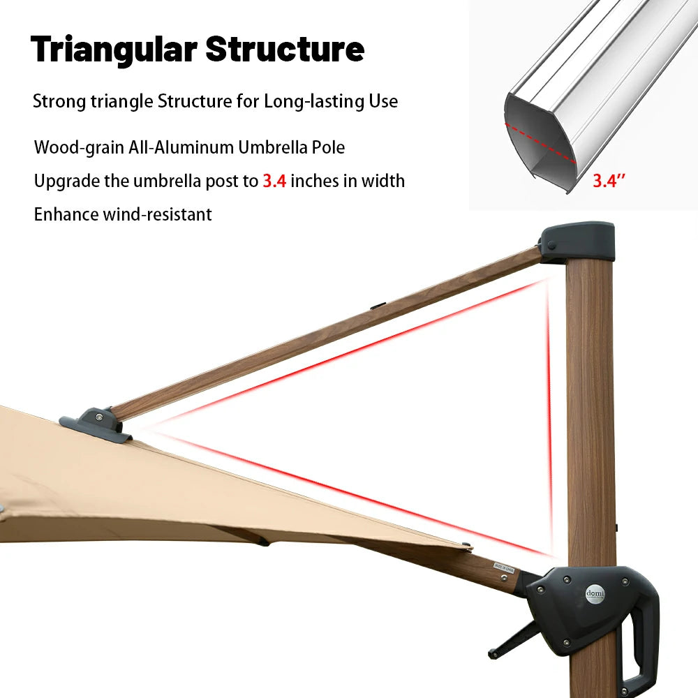 Domi Outdoor Living Cantilever Umbrella, a stylish and functional addition to your outdoor space. Designed for ultimate convenience and durability, this umbrella features a range of impressive characteristics that make it a must-have for any patio, deck, or garden.