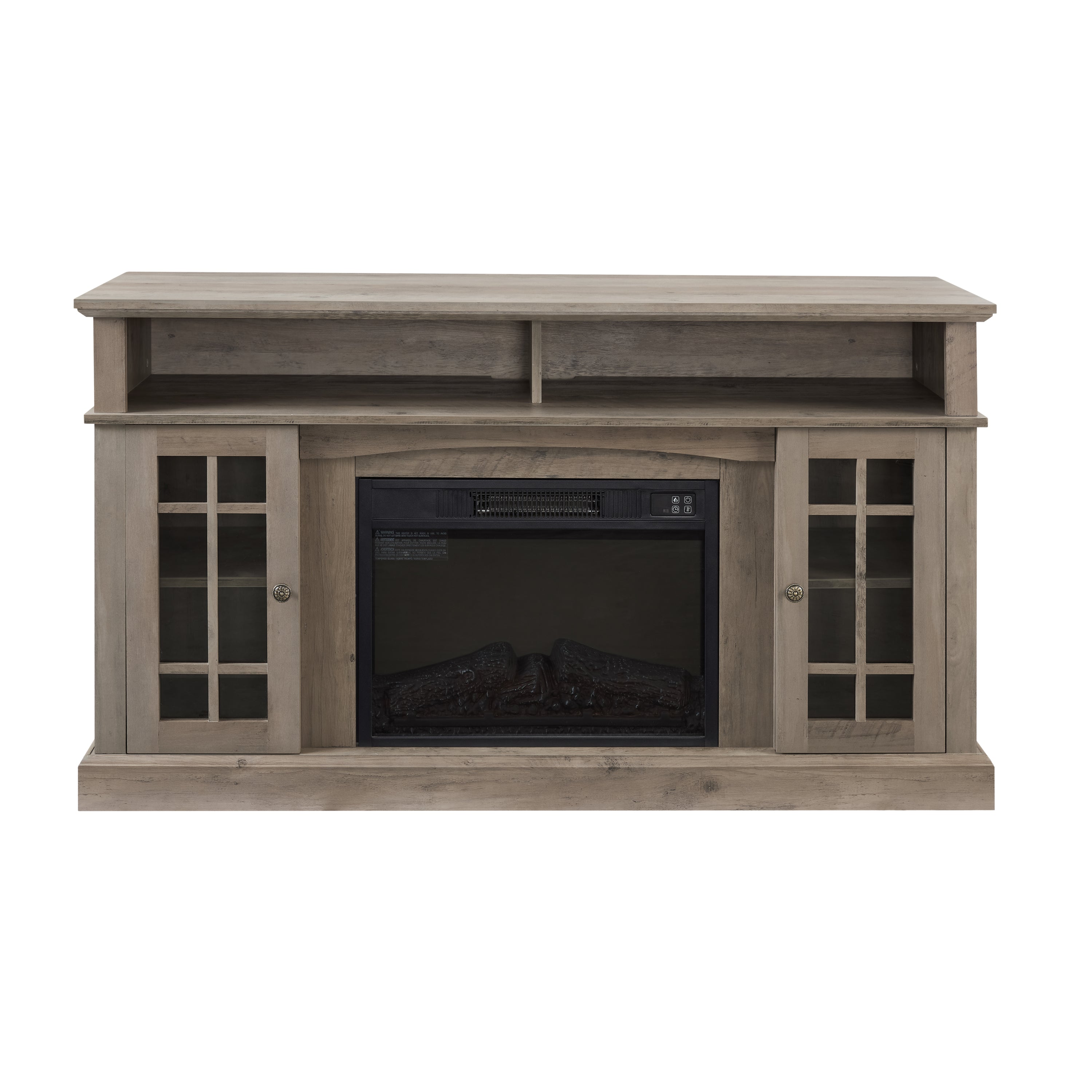 Classic TV Media Stand Modern Entertainment Console with 23″ Fireplace Inset for TV Up to 65″ with Open and Closed Storage Space, Gray Wash, 58.25″Wx15.75″Dx32″H