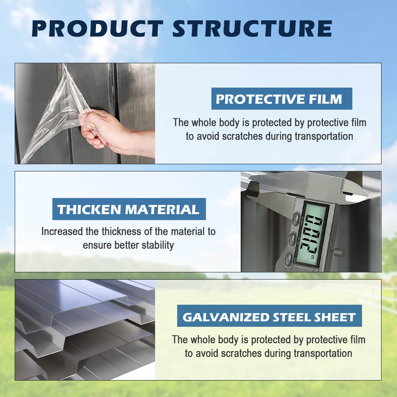 - Weatherproof Galvanized Steel for Durability