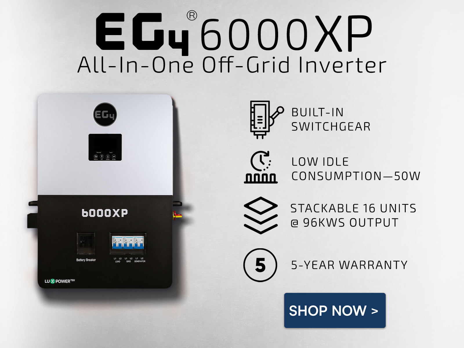 Complete Off-Grid Solar Kit EG4 6000XP | 8000W PV Input | 6000W Output | 48V 120/240V Split Phase + 6400 Watts of Solar PV