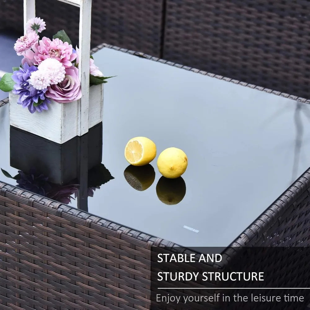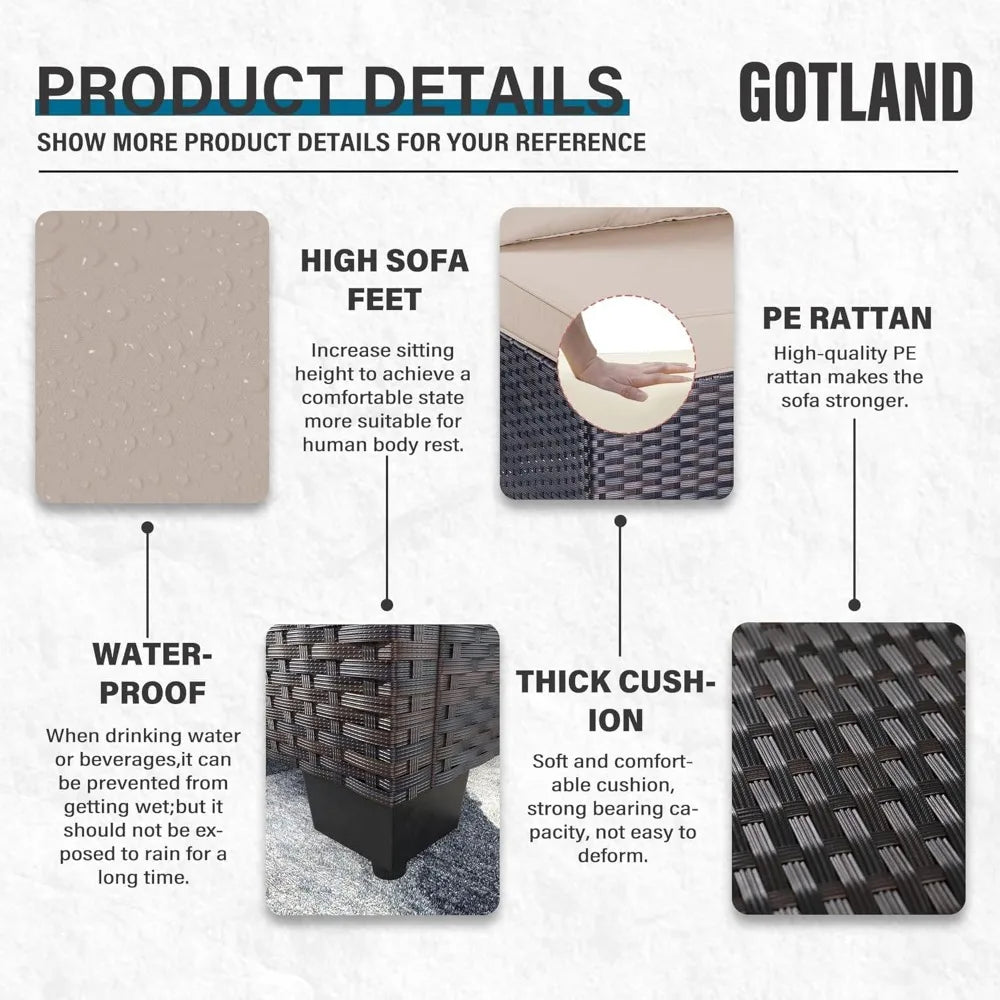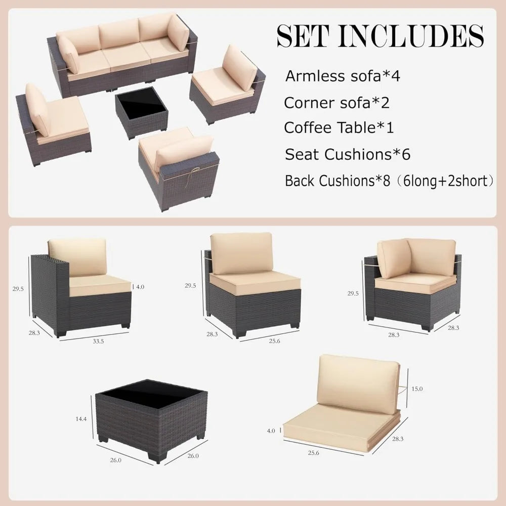 Enhanced product details for a superior experience. Each sofa piece is separate, allowing for free combination according to your preferences. Ideal for parties, lunches, reading, or naps. Made with durable all-weather PE rattan and a strong steel frame, this set withstands heat and weather better than similar wicker furniture. Removable glass and cushion covers are easy to clean. Crafted from durable yet lightweight manually treated all-weather PE rattan wicker and a rust-resistant galvanized steel frame, this patio furniture set is designed to endure heat and weather better than traditional wicker. Synthetic rattan.
