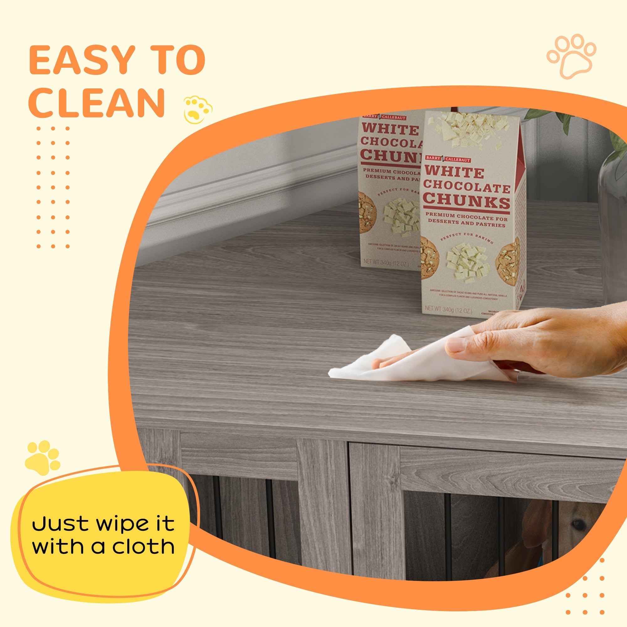 - Large Door: A large door makes it easy for your fur baby to enter and exit. This dog crate table is well-ventilated with air from three sides, so your dog will not find the air inside stuffy or dry.