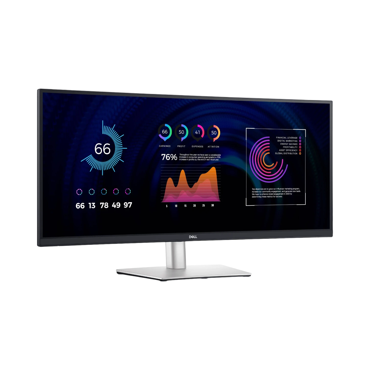 The Dell P3424WE is a 34-inch curved ultrawide monitor designed to enhance productivity and provide a comfortable viewing experience. It features a WQHD resolution of 3440 by 1440 pixels, delivering sharp and detailed images that are ideal for multitasking, creative work, or immersive entertainment. The 3800R curvature and 21:9 aspect ratio create a wide, panoramic view that reduces reflections and helps minimize eye strain during extended use.