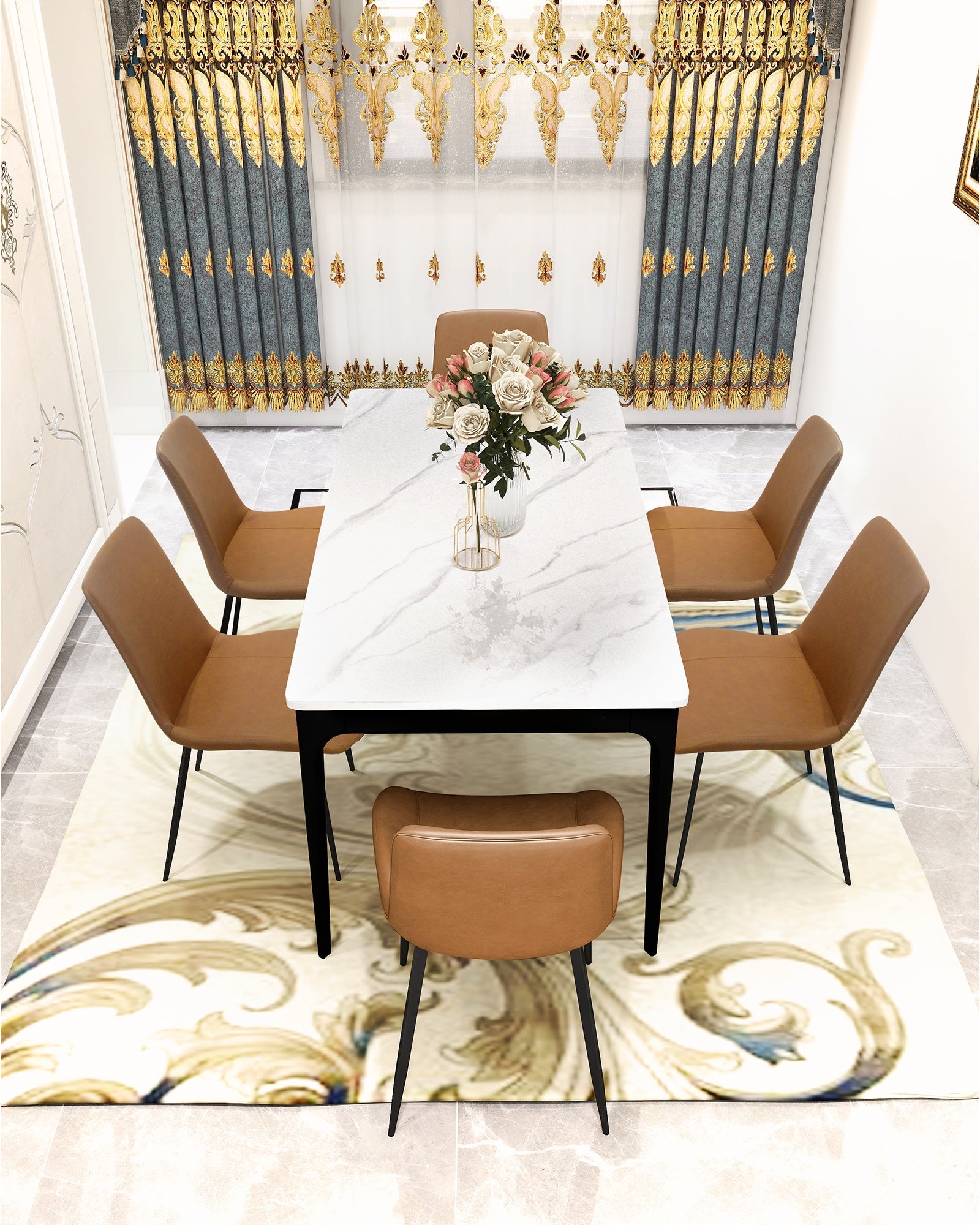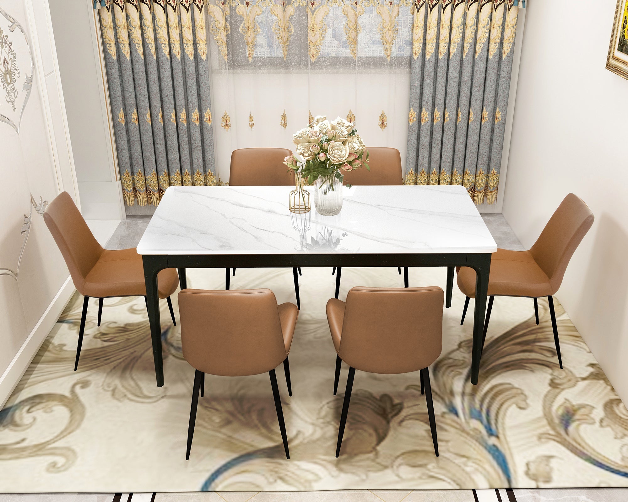 - Sintered stone Dining Table top with Aluminium Alloy legs