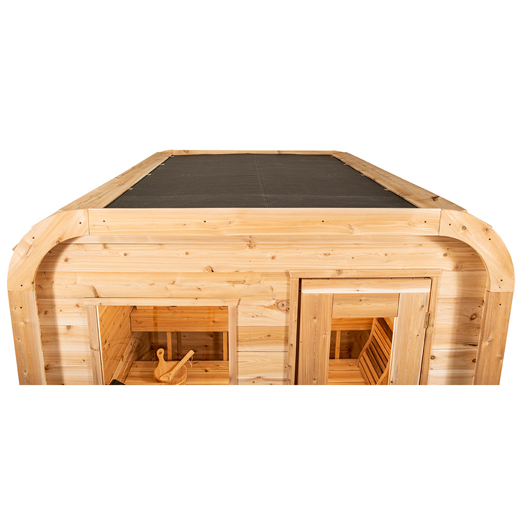 - Engineered for durability and resilience, the EPDM Membrane Roof protects your sauna from the elements. This high-quality roofing material guarantees a leak-proof barrier, ensuring the longevity and performance of your sanctuary through all seasons.