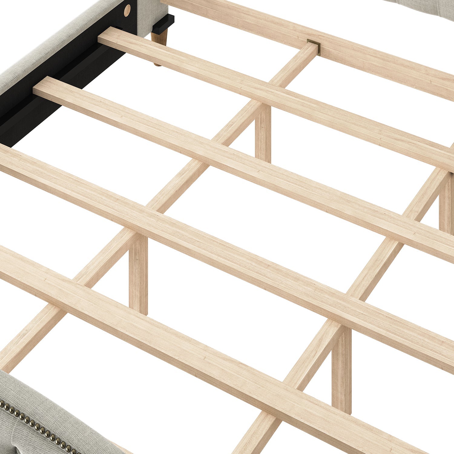 Quality and adequate sleep is an irreplaceable factor for your work and daily life, and adding this tufted upholstered wingback bed to your bedroom will not let you down. Founded on a sturdy wood frame including center legs, the headboard strikes a rectangular silhouette wrapped in deeply tufted upholstery with textured fabric, while foam padding provides added softness and comfort. With the charming nailhead trim design, this traditional style wingback bed features side rails and a solid footboard. It may accommodate your preferred memory foam, latex, or traditional innerspring mattress without a bulky box spring while creating convenient storage. Our soft wingback bed will be a perfect antidote to a long day’s work.