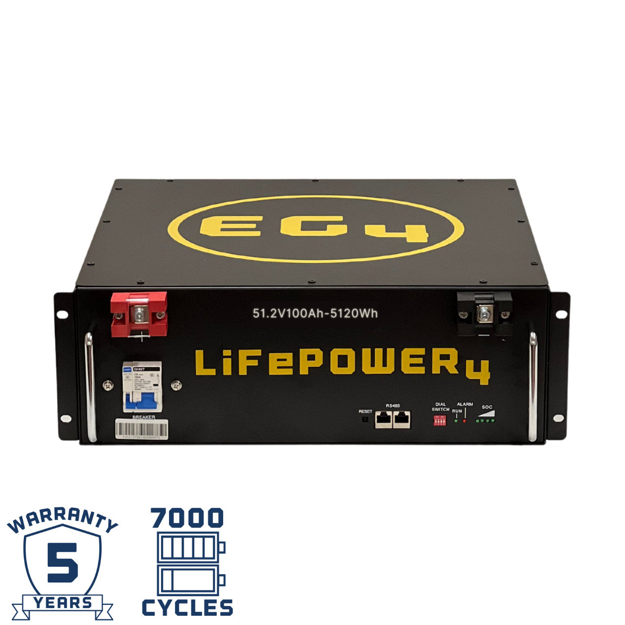 Introducing the EG4 LifePower4 Lithium Battery – a powerhouse of energy storage that offers unmatched reliability and durability. With an impressive 100AH capacity and an advanced internal Battery Management System (BMS), this battery is engineered to excel in every aspect. Inside its sturdy casing, you’ll find a configuration of 16 UL listed prismatic cells, each providing 3.2 volts in series. Rigorously tested through 7,000 deep discharge cycles at 80% Depth of Discharge (DoD), this battery can be charged and discharged daily for over 15 years without skipping a beat.