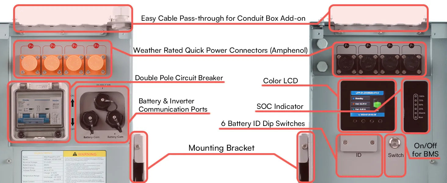 The PowerPro System was designed to be a durable, high-capacity off-grid power solution, with a single unit design, easy expandability down the road, and all hardware included to secure the system to your wall with a simple installation. The PowerPro comes equipped with an IP65-rated, all-weather casing, as well as an advanced BMS with auto cell-balancing, and a responsive self-heating function to ensure long-lasting safety and reliability even in the harshest of conditions. Plus, the PowerPro features an interactive LED display on the side of the unit, along with full CANBus and RS485 communication protocols, so you can always monitor the status and performance of your power. This battery even boasts an internal fire extinguishing unit for ultimate peace of mind when installed inside or outside your home. Supported by these robust safety and visibility features, this power system is engineered to withstand up to 8,000 cycles at 80% depth of discharge (DoD), achieving lifespans of up to 10+ years.