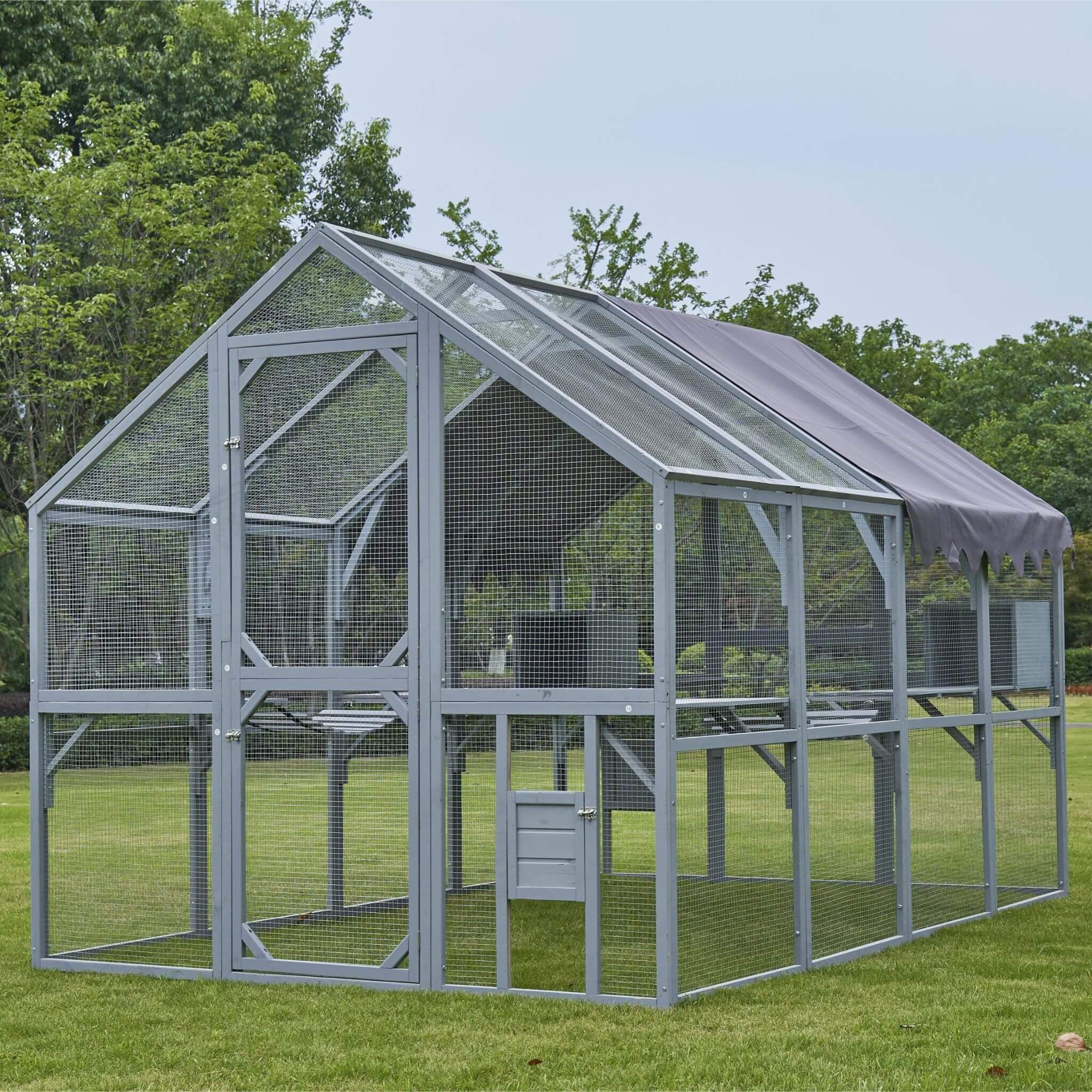 - The walk-in door and sliding panels make feeding, cleaning, and access incredibly simple.