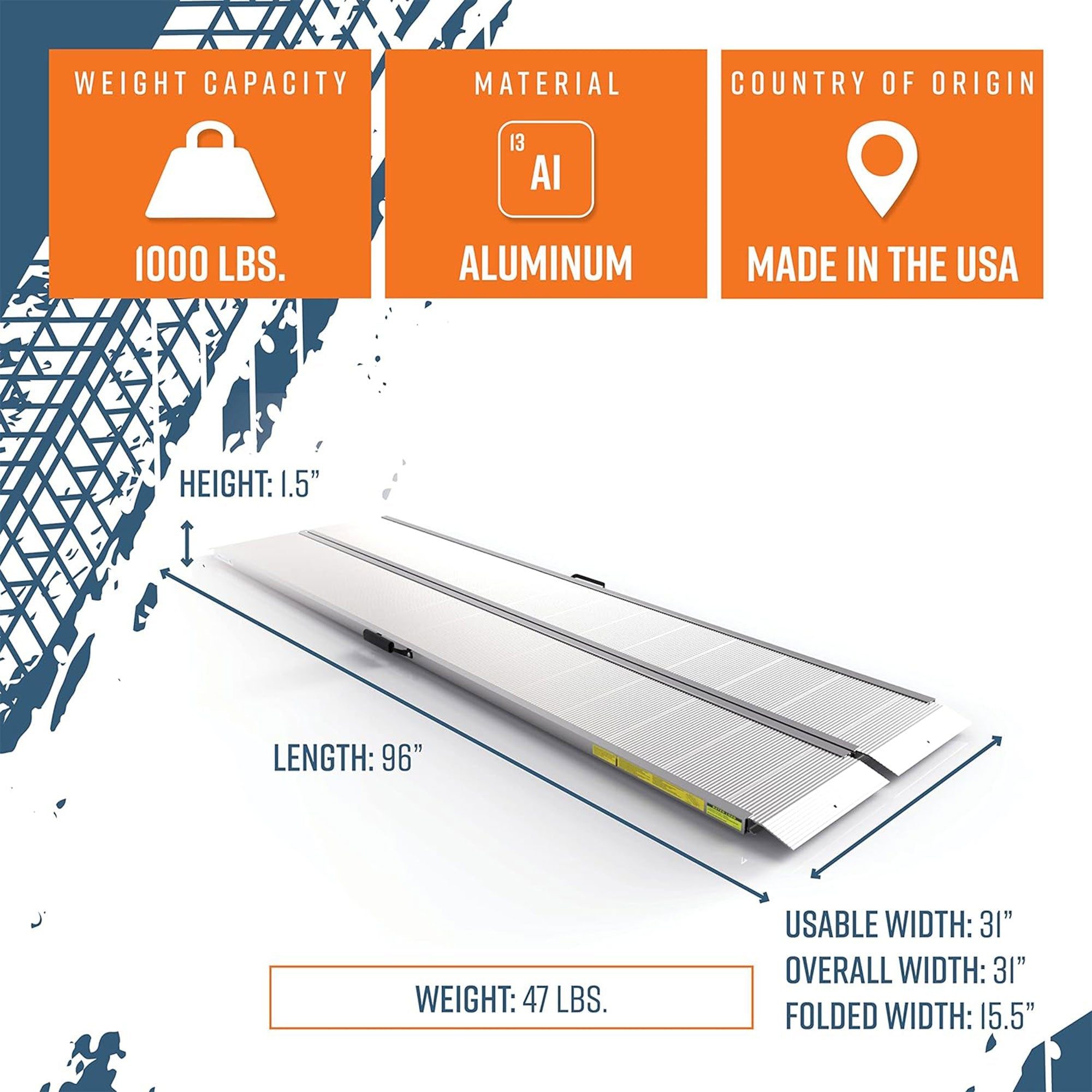 - Easily foldable to a compact 15.48-inch width and can be conveniently stowed in a truck, trailer, shed, or van; Durable handles provide a comfortable grip for easy carrying without compromising the ramp’s functionality