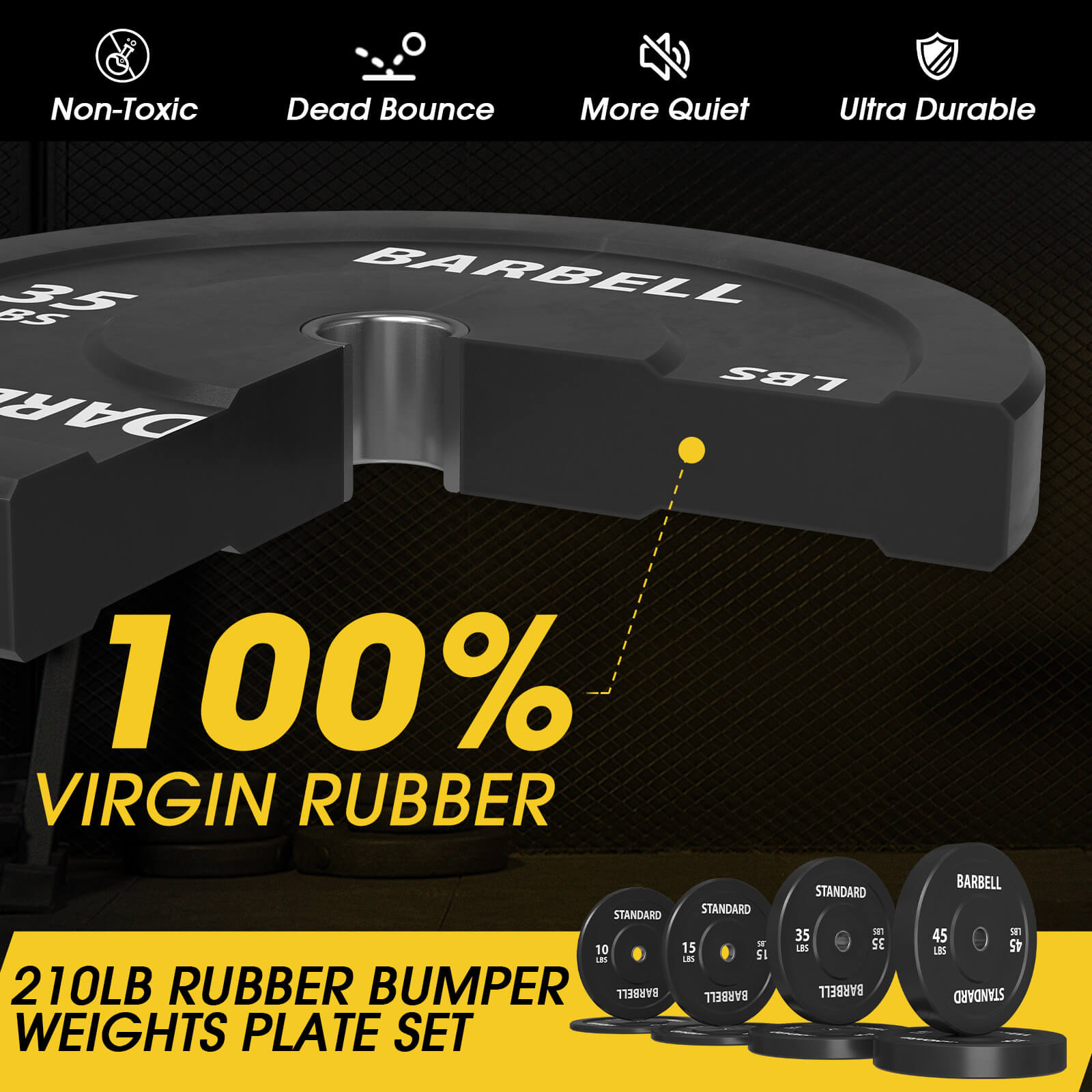 The GMWD Black Bumper Plates are the ultimate combination of durability, functionality, and design. Made from high-density natural rubber, these plates are non-toxic, low-odor, and engineered for quieter workouts, eliminating the clanging noise of traditional iron weights. With a 90 hardness rating, they offer low rebound, reducing wear and tear on your bars and protecting your floors during intense training. The 2-inch stainless steel inserts are built to last, featuring molded hooks that enhance durability and resist wear, scratches, and adhesion, ensuring smooth compatibility with all standard Olympic bars and racks.