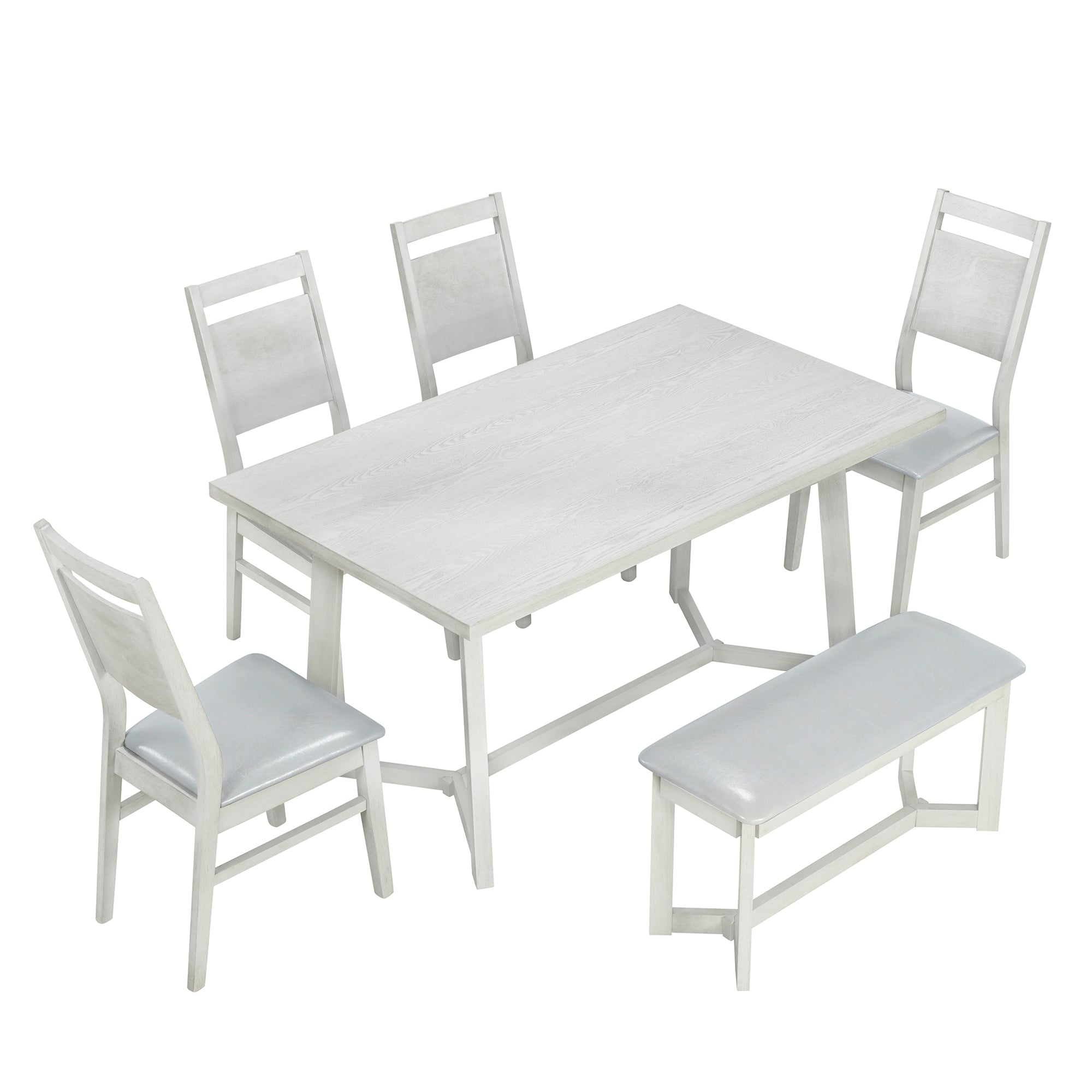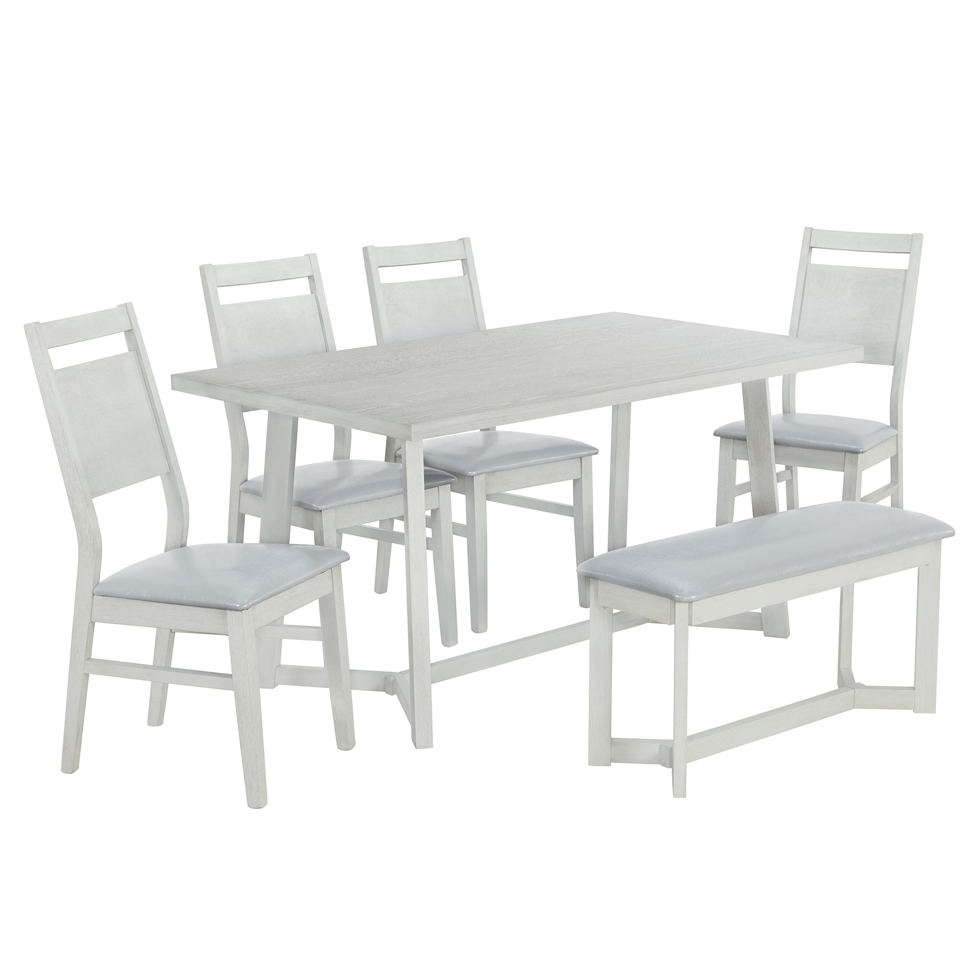Be the first to review “Farmhouse 6-Piece Wood Dining Table Set with 4 Upholstered Chairs and Bench, Gray” Cancel reply